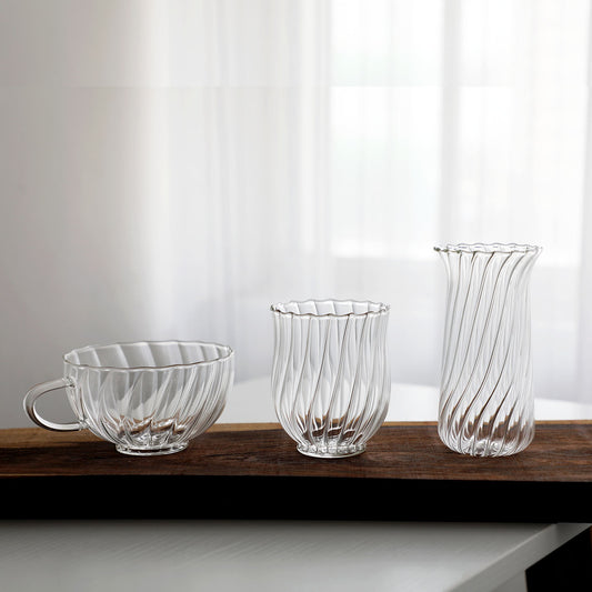 IwaiLoft【2個以上買うと送無】モール フリーカップ 耐熱ガラス グラス 小 筋入 かわいい ティーグラス ティーコップ 冷茶グラス 透明 おしゃれ ガラスマグ ガラスカップ コップ コーヒーカップ 電子レンジOK 紅茶カップ ティーウェア ガラス食器