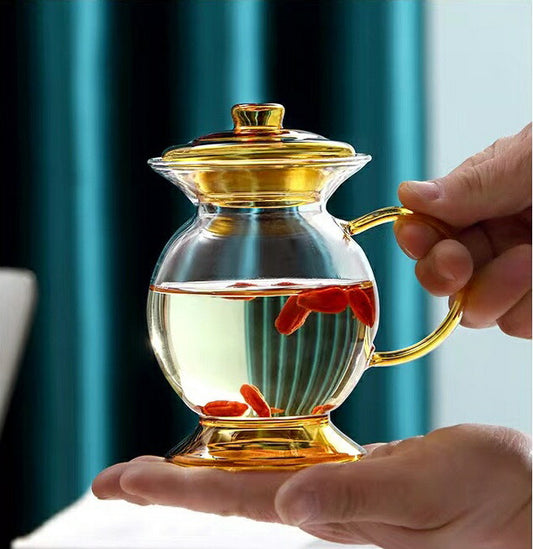 IwaiLoft レトロ アンティーク調 家飲み カップ 耐熱ガラス グラス ガラスマグ ガラスカップ コップ コーヒーカップ コーヒーマグ かわいい モーニングカップ ティーグラス ティーカップ 冷茶グラス 中華風 結露しにくい 電子レンジOK 来客用 誕生日プレゼント