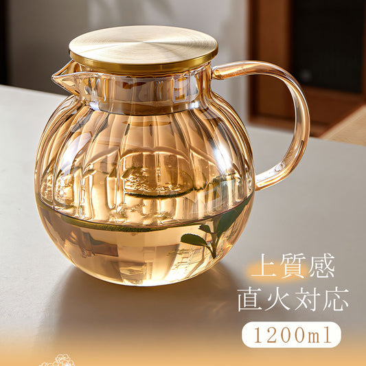 IwaiLoft ワンタッチ ティーポット 耐熱ガラス 冷水筒 ピッチャー 水差し 1.05L 1050ml 麦茶ポット ガラスポット ウォーターピッチャー ウォーターカラフェ クリア ジャグ フルーツポット ドリンクピッチャー ピクルスポット おしゃれ アンティーク ガラス食器 glass pot