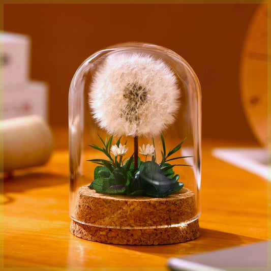 IwaiLoft「愛の神託」Mini プリザーブドフラワー タンポポ たんぽぽ 蒲公英 ガラスドーム ガラスボトル ギフト 敬老の日 父の日 母の日 プレゼント 枯れないお花 ボトルフラワー 彼女 妻 ギフト 結婚祝い 誕生日プレゼント・発表会・贈り物 フラワー インテリア お供え花 ホワイト系