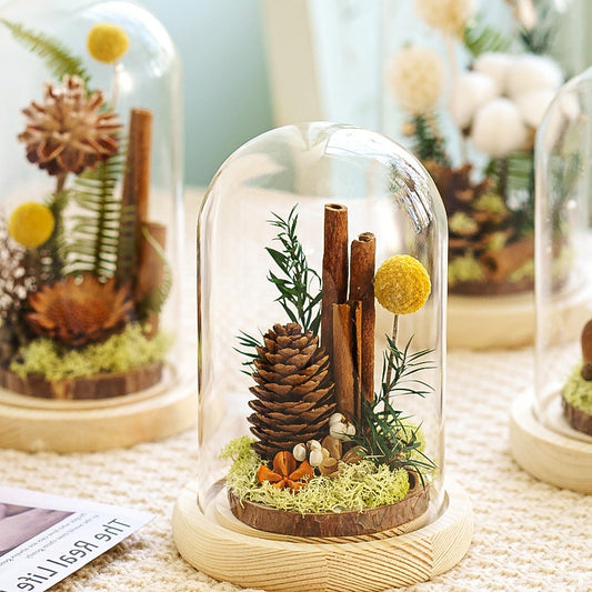 IwaiLoft ドライフラワー 松ぼっくり 綿の木 コットンフラワー プリザーブドフラワー ギフト プレゼント 枯れないお花 ボトルフラワー ガラスドーム クリスマス 素材 誕生日プレゼント・お祝い・発表会・贈り物に 母の日 彼女 妻 プレゼント 結婚祝い フラワー インテリア