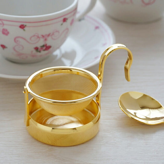 IwaiLoft 北欧 金属製 茶こし 茶漉し 回転式 ミラー 受け皿 ゴールド ティーストレーナー(茶こし)ドリッパー フィルター ティーストレーナー ガラス 紅茶 ステンレスの茶こし 急須 マグカップ ティーポット など用 取っ手付き ちゃこし 茶道具 ギフト プレゼント