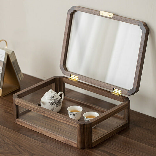 ウールナット&ガラス ウッドケース ウッドボックス 収納ボックス 収納ケース 透明 海棠 ディスプレイ フィギュア ケース コレクションケース アクリルスタンド ディスプレイケース 人形ケース 筆 文房具 長方形 雲型 茶棚 食器棚 小物収納 茶室 茶芸 お稽古 IwaiLoft