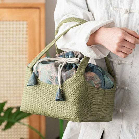 シノワズリ・レトロ 手提げバッグ 無地 布バスケット 収納 大容量 器 収納バッグ 仕切り付き 軽い トートバッグ おしゃれ バッグインバッグ リュック 茶器収納 アウトドア 手提げ袋 食器 ティー用品 コーヒー用品 収納 バッグ 整理整頓 道具袋 調理器具入れ 収納袋 IwaiLoft