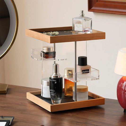 Wood Art 机上ラック 2段 木製 卓上ラック コスメ収納 正方形 四方 ミニラック カップ収納 食器棚 卓上収納ラック ビッチウッド デスク上置棚 展示棚 インテリア シンプル 高級感 オープンラック オープンシェルフ 店舗什器 コスメ 化粧品 器 収納 小物入れ 北欧 IwaiLoft