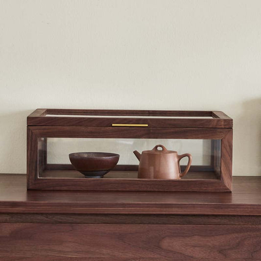 ウールナット&ガラス 茶棚 ウッドケース ウッドボックス 収納ボックス 収納ケース 透明 一段 二段 ディスプレイ フィギュア ケース コレクションケース アクリルスタンド ディスプレイケース 人形ケース 筆 文房具 長方形 食器棚 小物収納 茶室 茶芸 お稽古 IwaiLoft