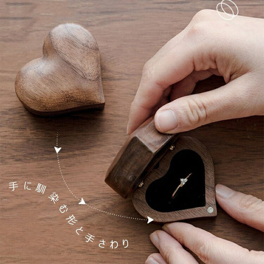Love ハート型 指輪ケース かわいい リングケース 木製 小 指輪 収納 高級 小さい ミニサイズ おしゃれ アクセサリーケース ウールナット 婚約指輪入れ 指輪収納 持ち運び リングボックス 携帯 外出 旅行便利 結婚式 結婚お祝い 母の日 プレセント 誕生日 ギフト IwaiLoft