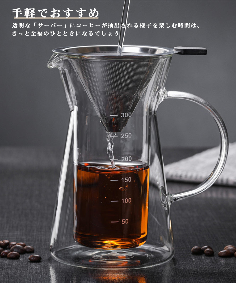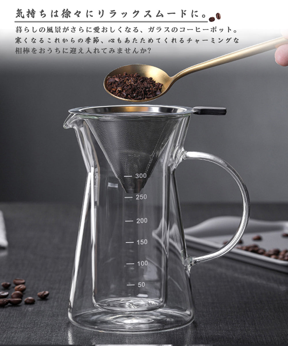 IwaiLoft 新作 2層耐熱ガラス コーヒーサーバー コーヒーポット ガラスサーバー 350mL ドリッパーコーヒー コーヒー用品 珈琲 コーヒー器具 おしゃれ 北欧 母の日 父の日 プレゼント 珈琲ギフト