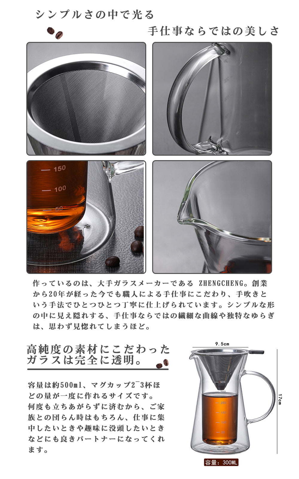 ★耐熱ガラス製コーヒーサーバーは洗浄が簡単で、