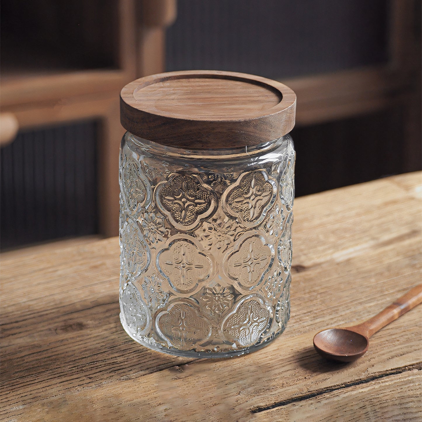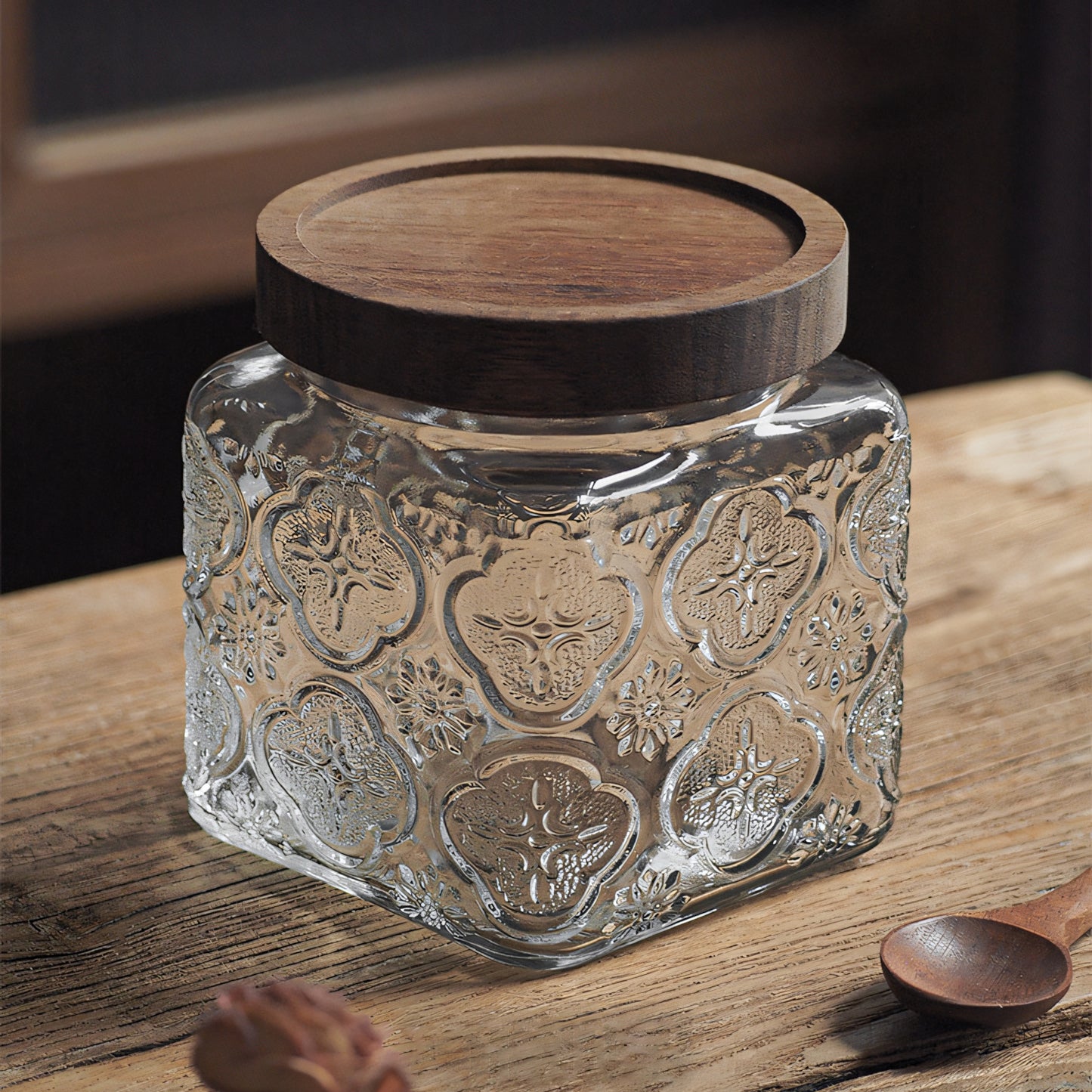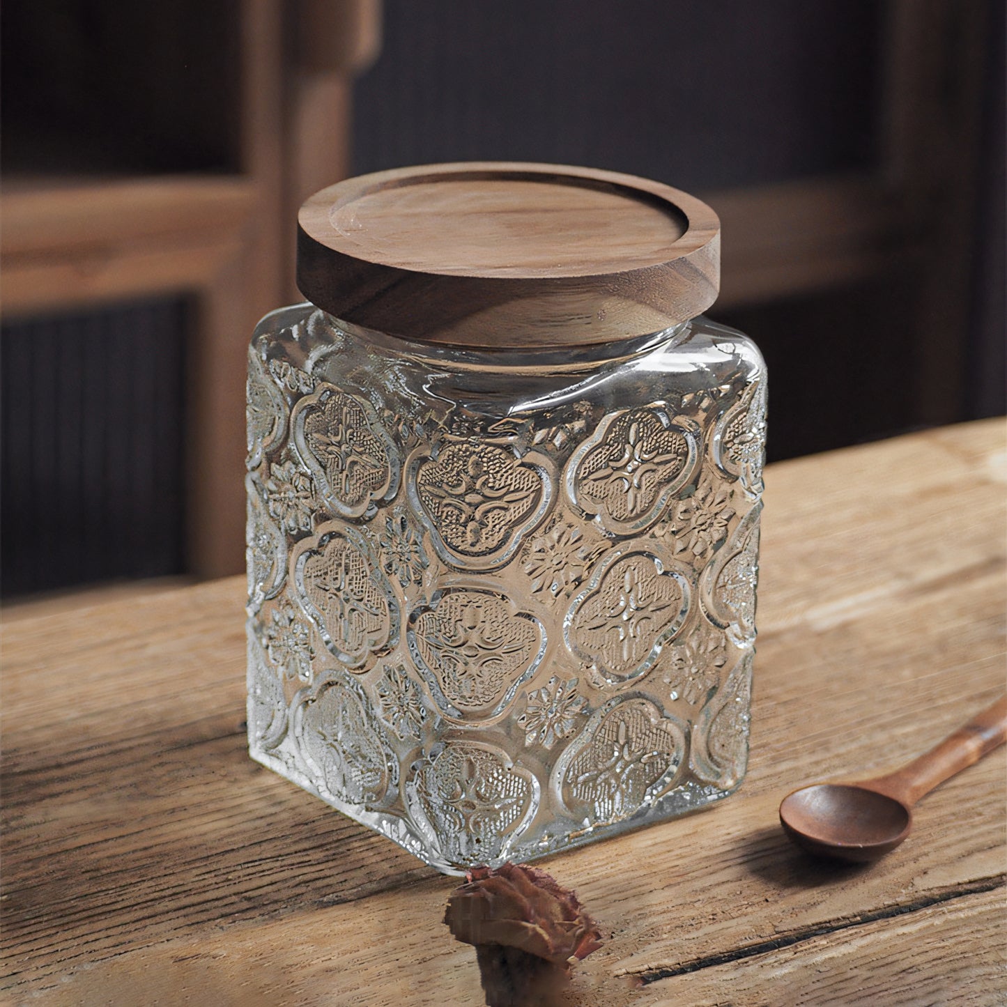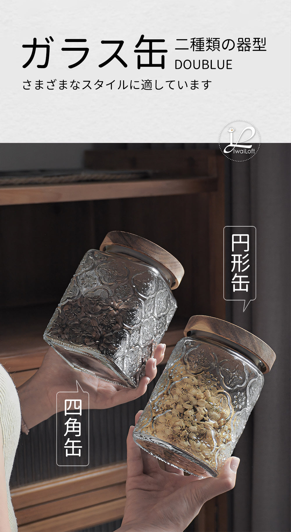 IwaiLoft 「海棠花」ガラス キャニスター コーヒー豆 保存容器 密閉 珈琲キャニスター 耐熱ガラス 梅酒びん ガラス 果実酒容器 密封ビン 茶筒 茶入 お菓子 茶葉 香料 漬物器 漬物保存容器 防湿保存 Glass Canister