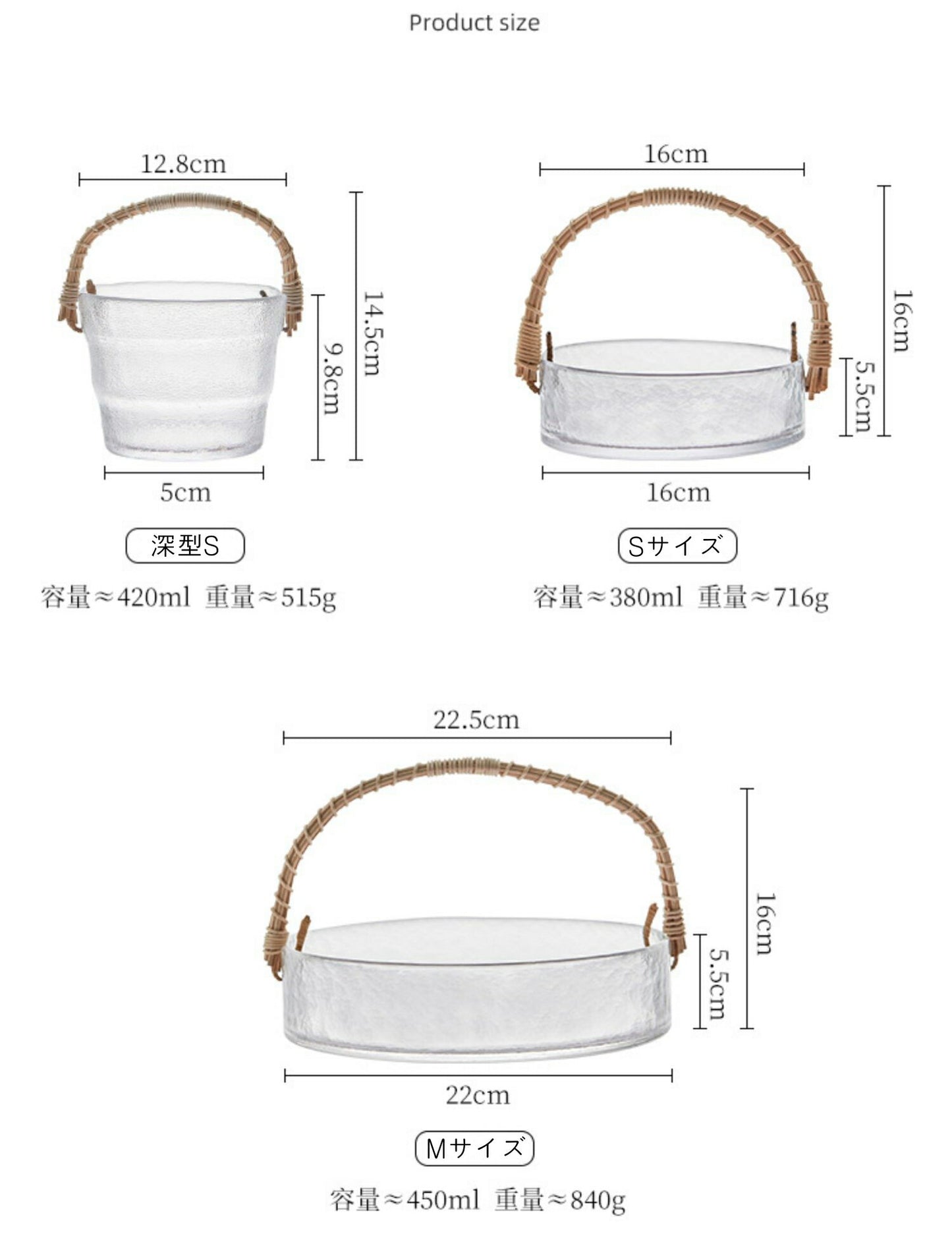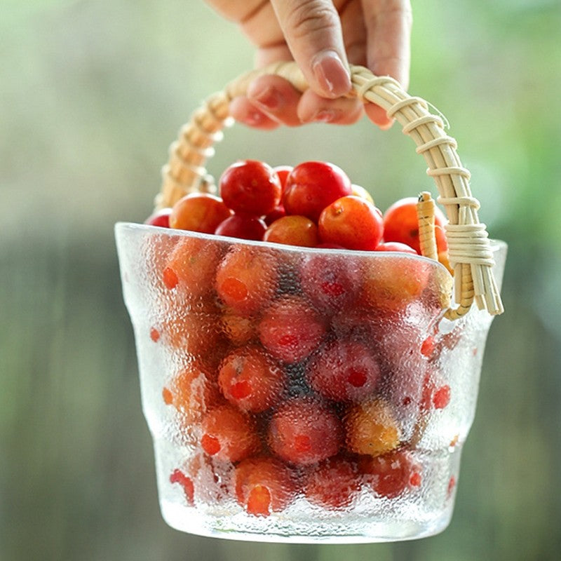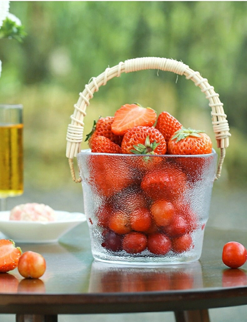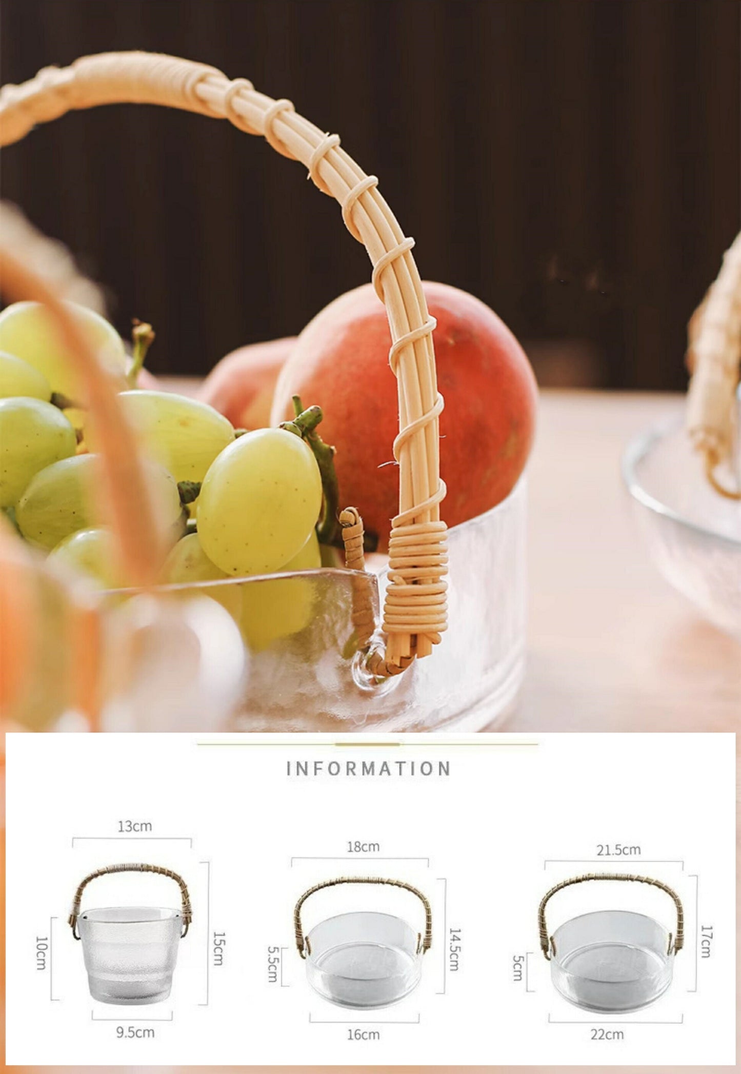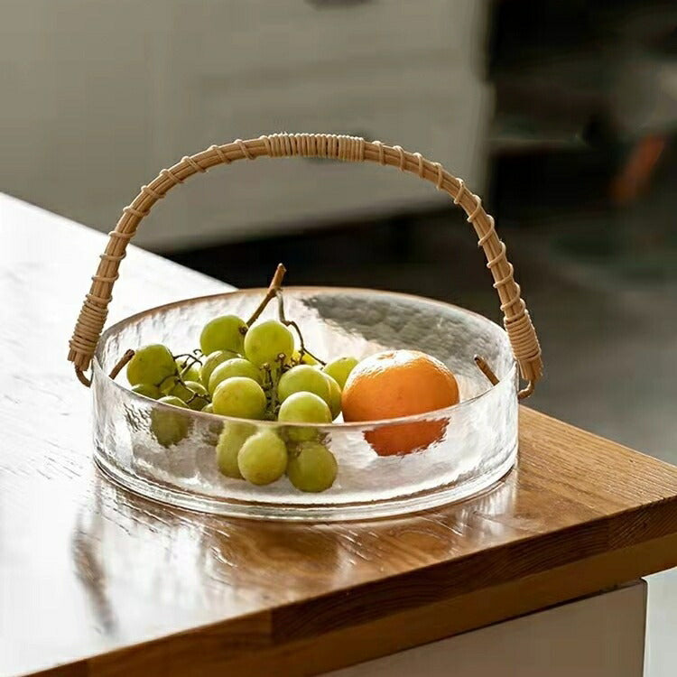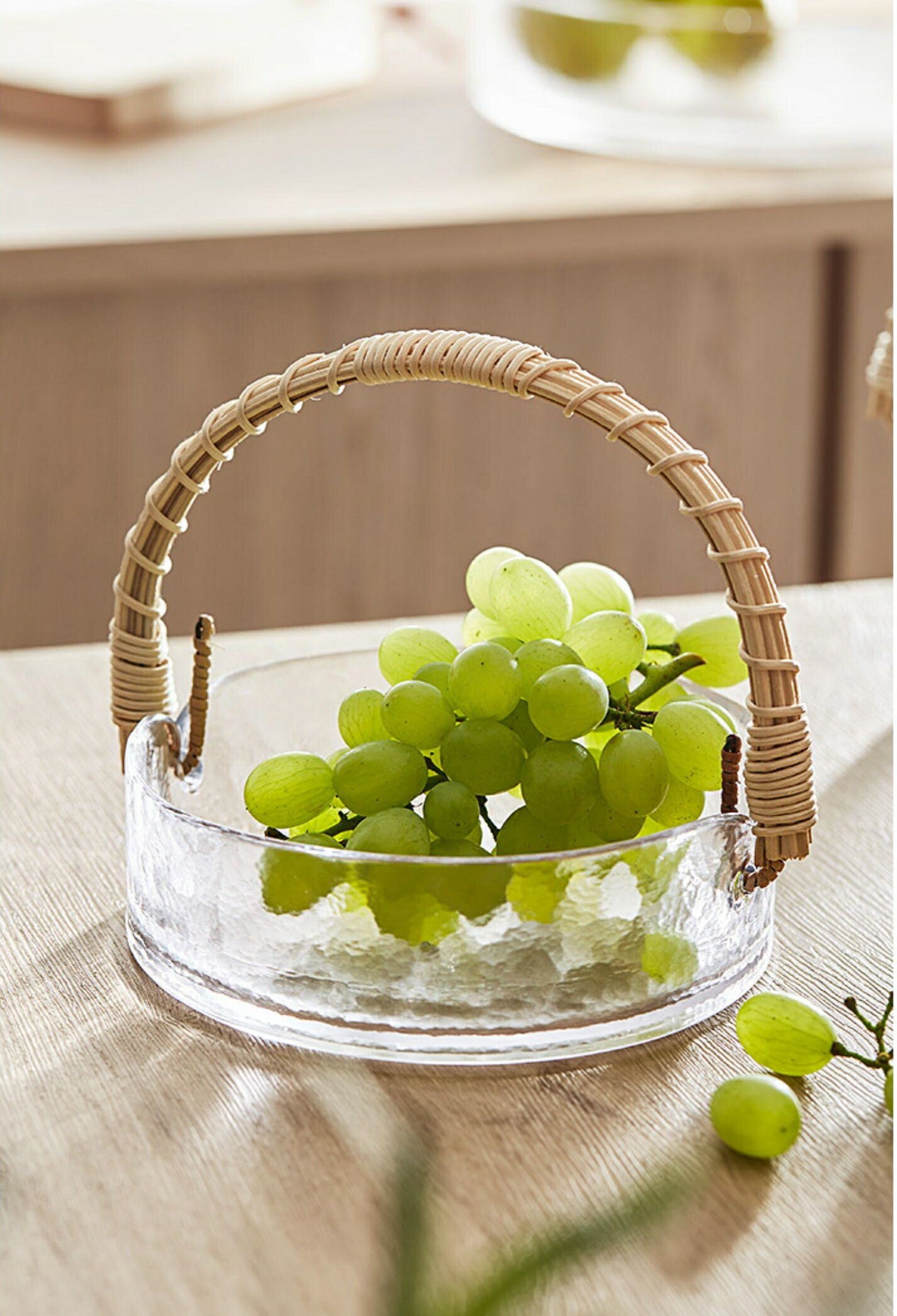 IwaiLoft 藤の持ち手 ガラスの盛り鉢 盛器 ラス盛り鉢 洋食器 ガラス 大鉢 大皿 盛鉢 手付かご ガラス鉢 桶型 ワインクーラー 冷酒クーラー アイスペール 硝子 平皿 菓子鉢 ガラスの器 そうめん ボウル 鉢 そうめん鉢 大鉢 めん鉢 ひやむぎ 深鉢 ガラスボウル 冷麺鉢