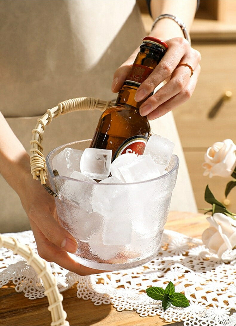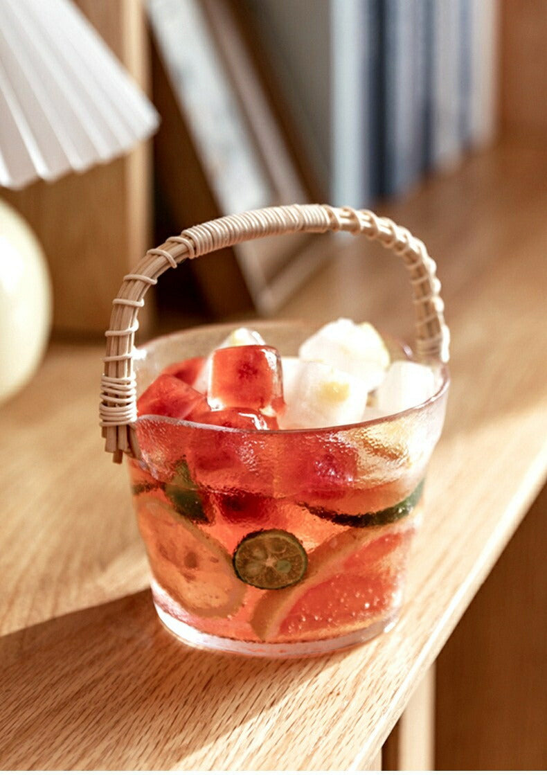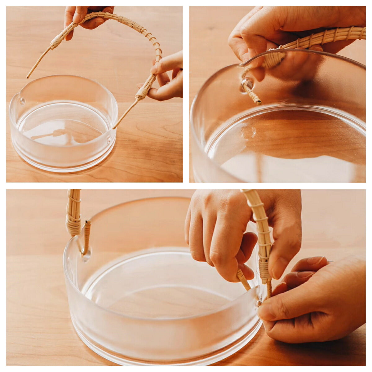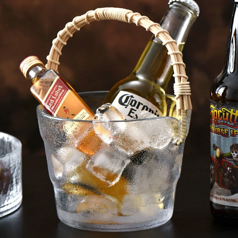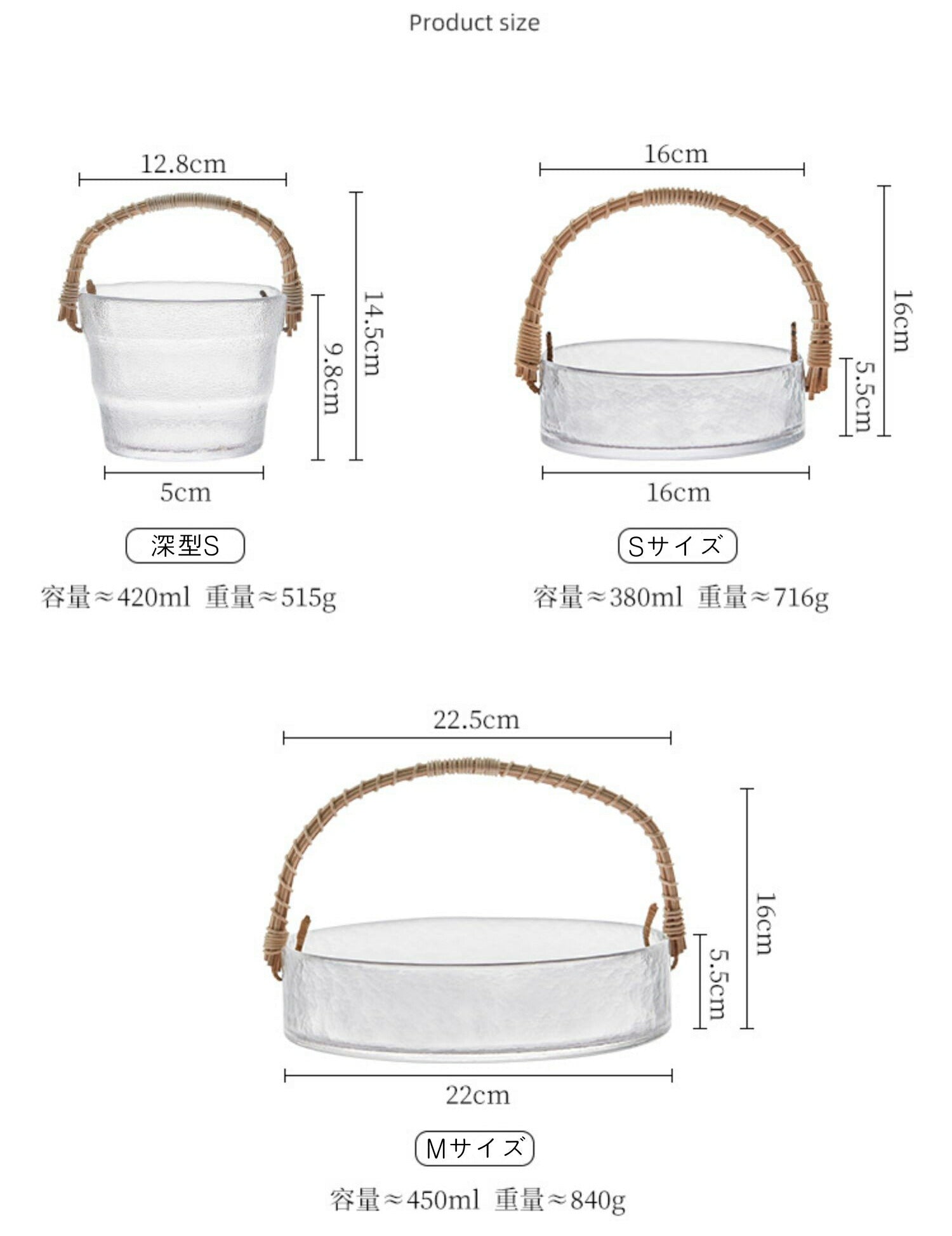 IwaiLoft 藤の持ち手 ガラスの盛り鉢 盛器 ラス盛り鉢 洋食器 ガラス 大鉢 大皿 盛鉢 手付かご ガラス鉢 桶型 ワインクーラー 冷酒クーラー アイスペール 硝子 平皿 菓子鉢 ガラスの器 そうめん ボウル 鉢 そうめん鉢 大鉢 めん鉢 ひやむぎ 深鉢 ガラスボウル 冷麺鉢