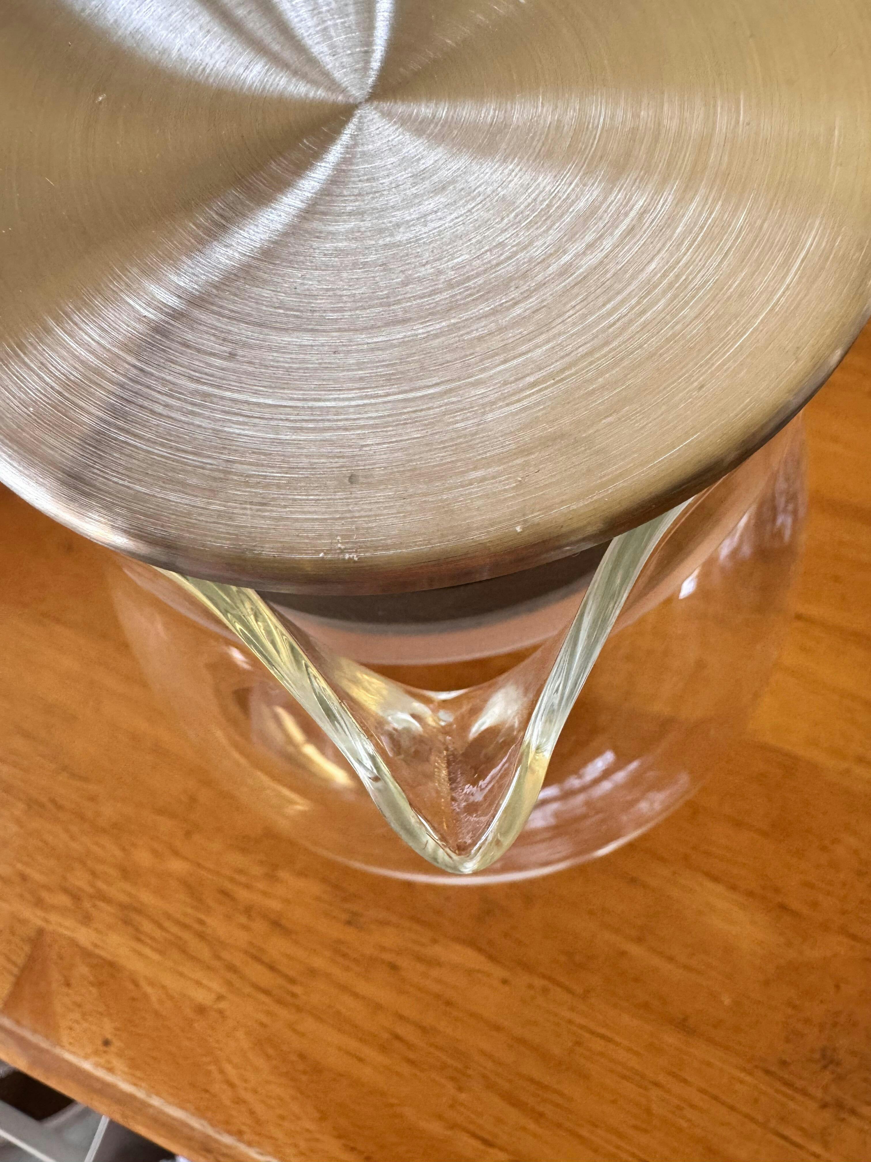 Glass has a delicate image, but this one has a moderate thickness and a casual finish. With a large handle that you can hold firmly, a strainer with fine mesh, a lid with packing that does not fall off, a sharp spout, and the ability to heat in a microwave oven (pot only), etc., functionality is stress-free!