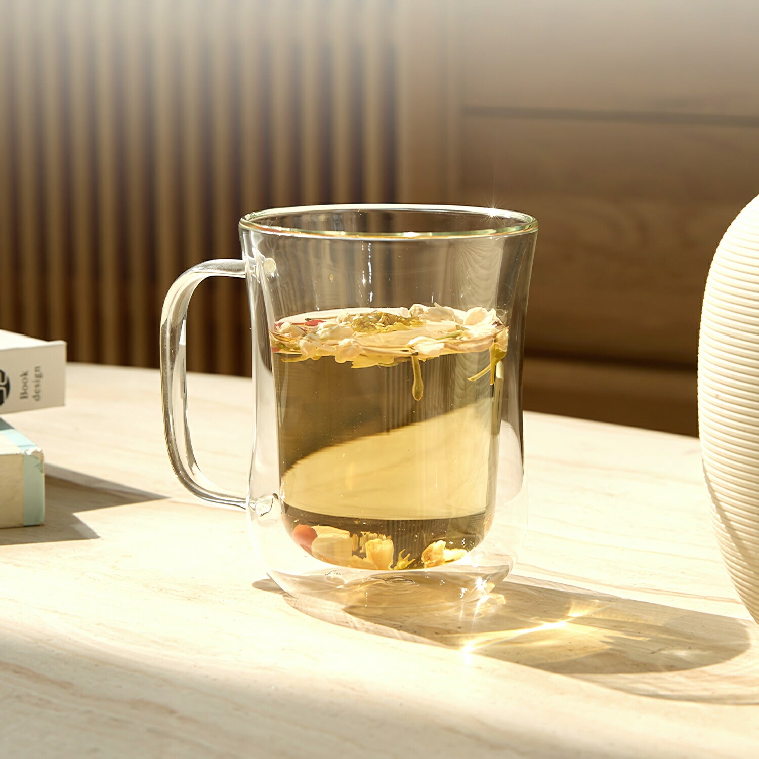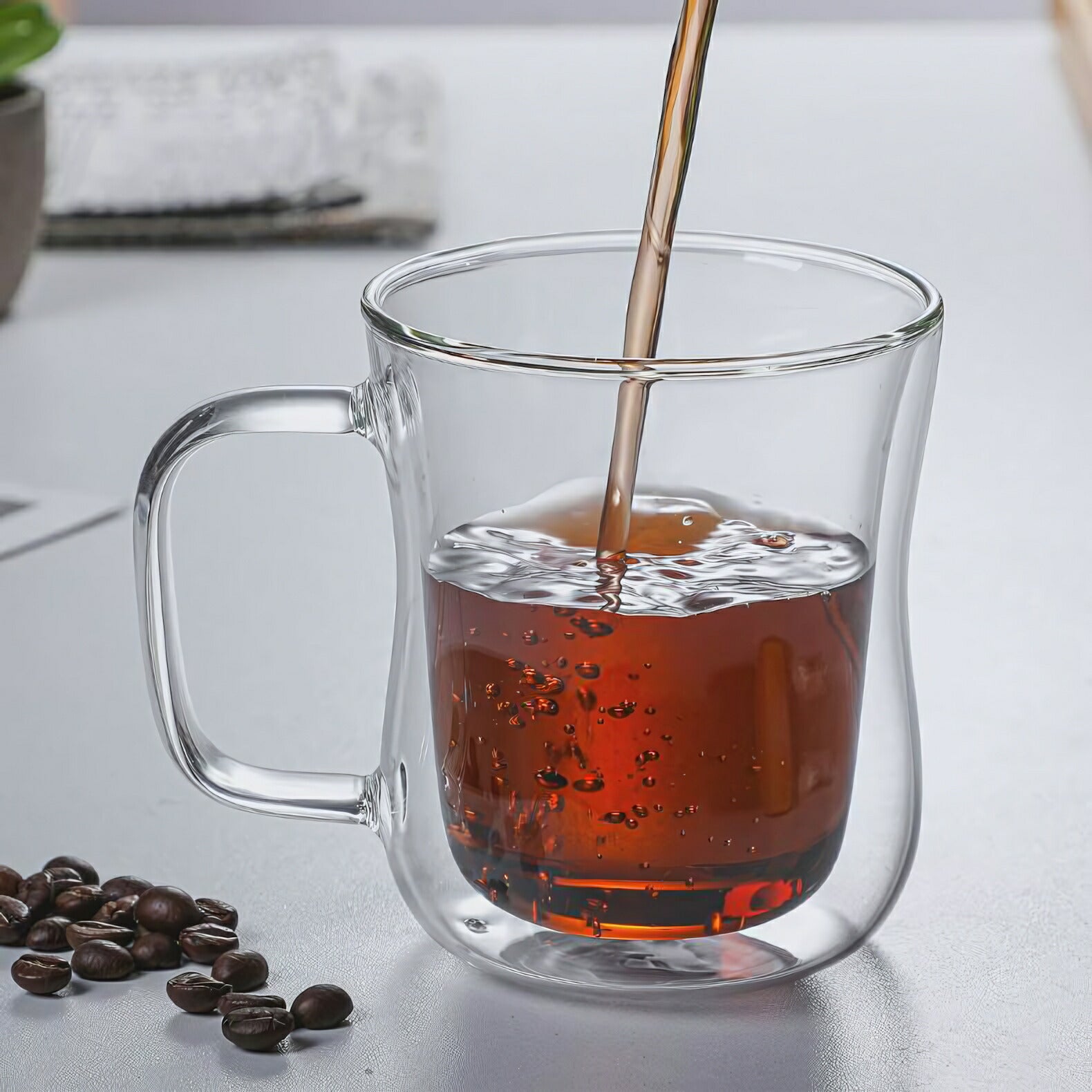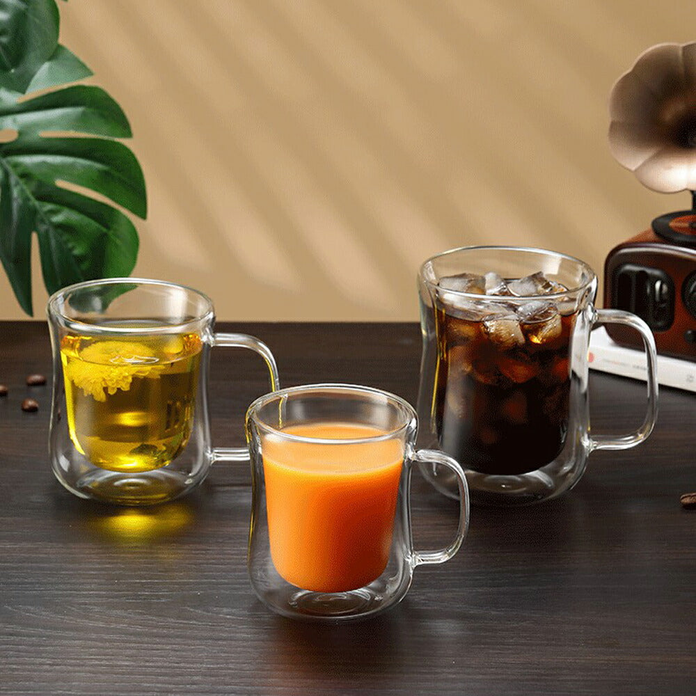 IwaiLoft 耐熱ガラス グラス ガラスマグ ダブルウォールグラス ガラスコップ ガラスカップ コーヒーカップ コーヒーマグ かわいい モーニングカップ ティーグラス 冷茶グラス 結露しにくい 電子レンジOK カフェコーヒー器具