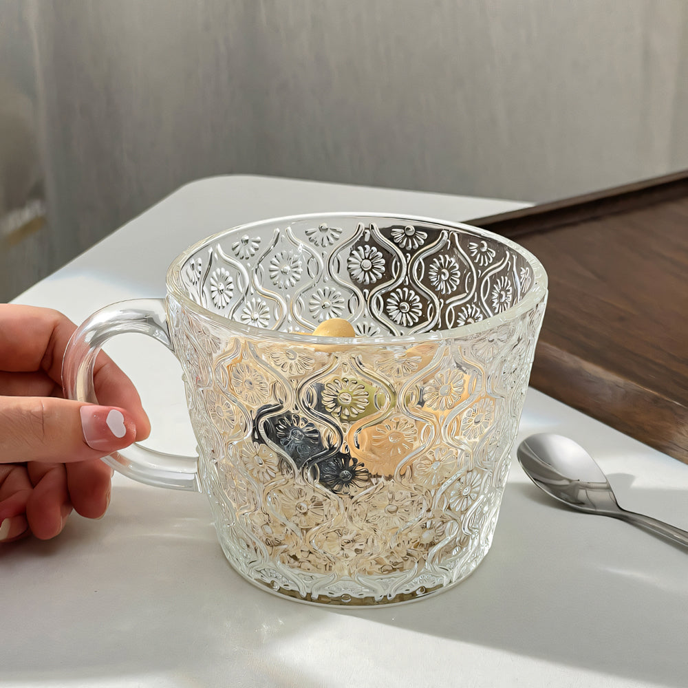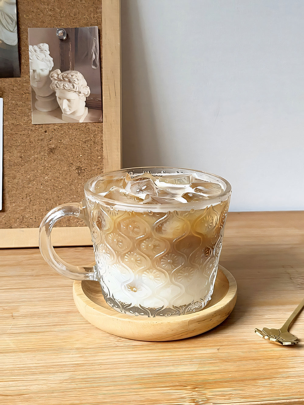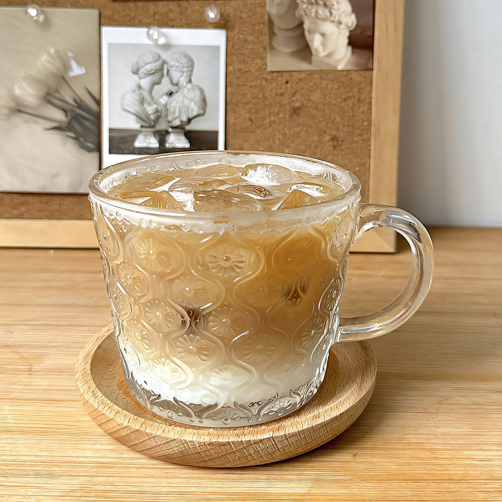 IwaiLoft 「花海棠」 ガラス グラス 400ml ガラスマグ ガラスカップ コップ コーヒーカップ コーヒーマグ かわいい モーニングカップ ティーグラス 冷茶グラス 結露しにくい 電子レンジOK カフェコーヒー器具 来客用 誕生日プレゼント お祝い