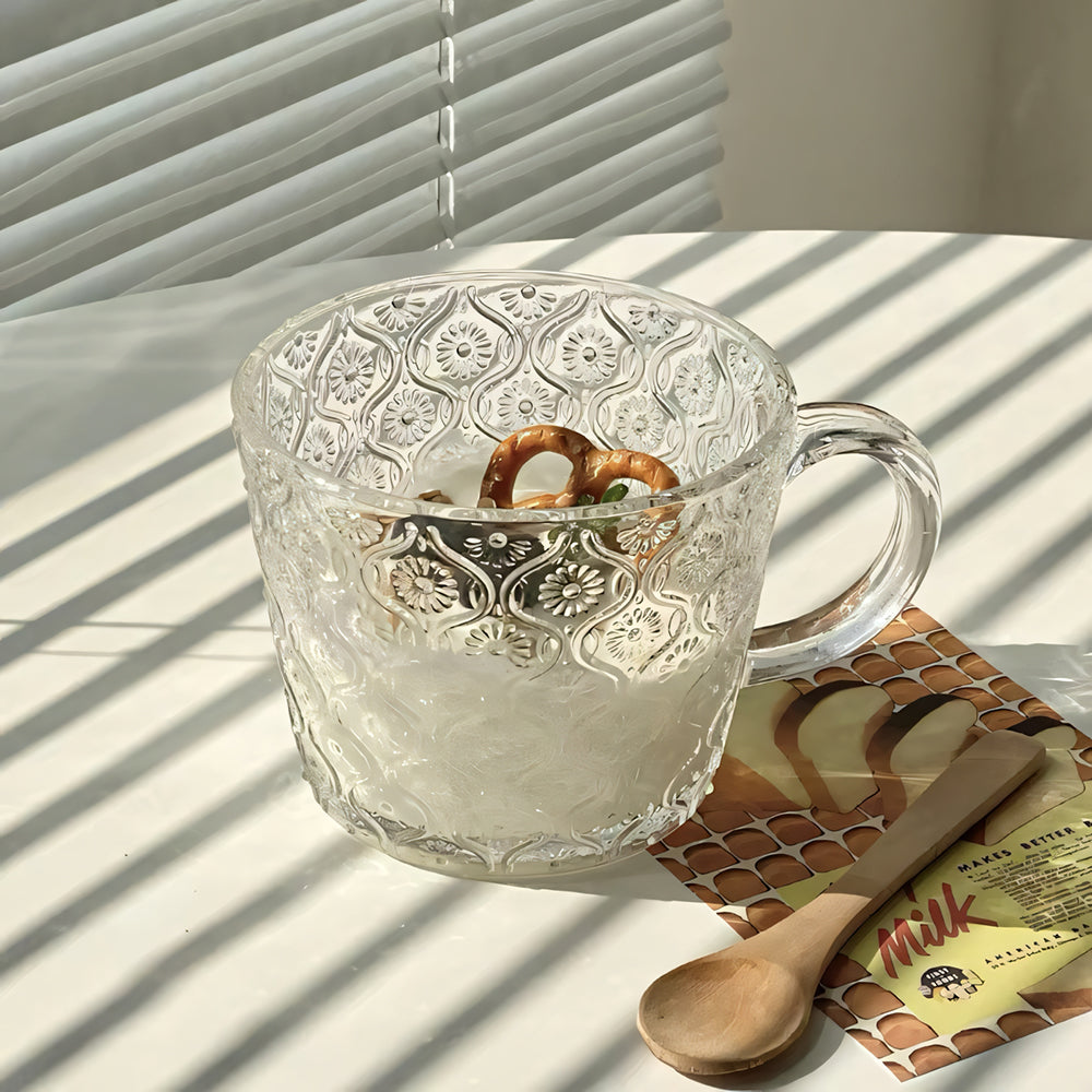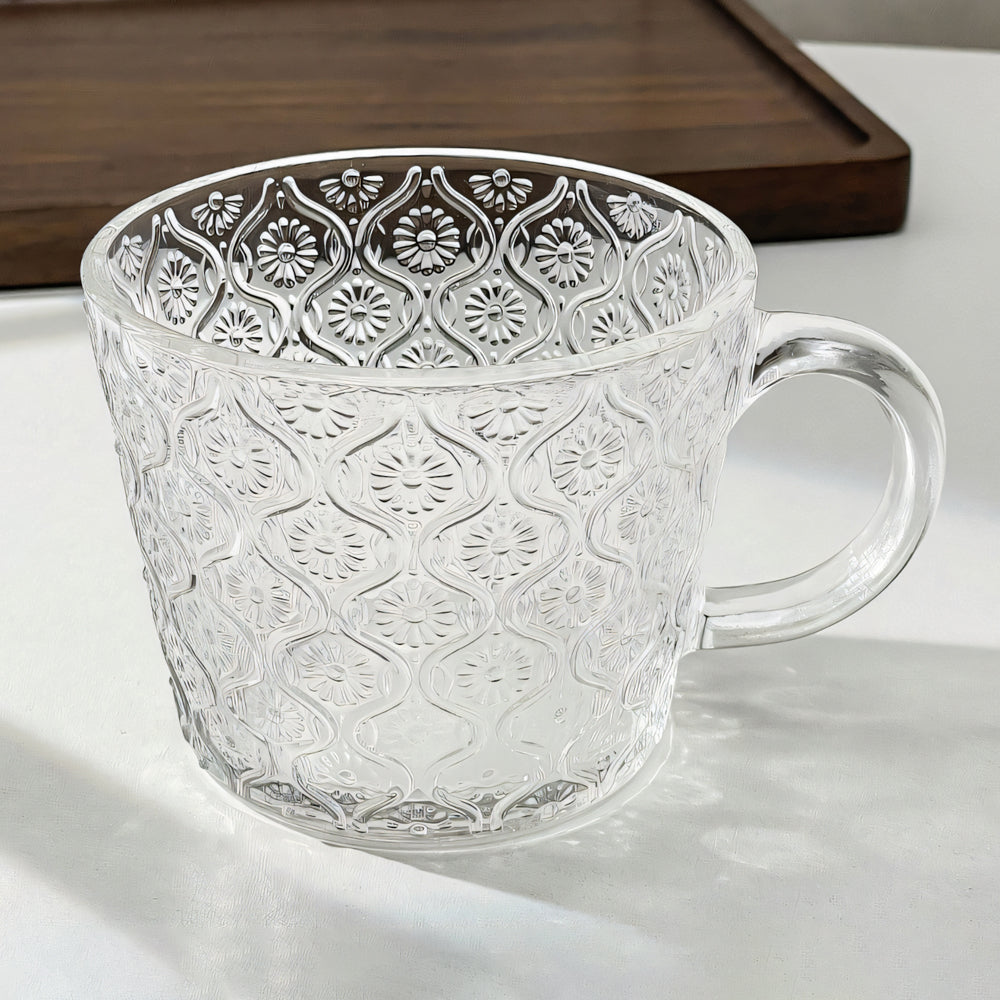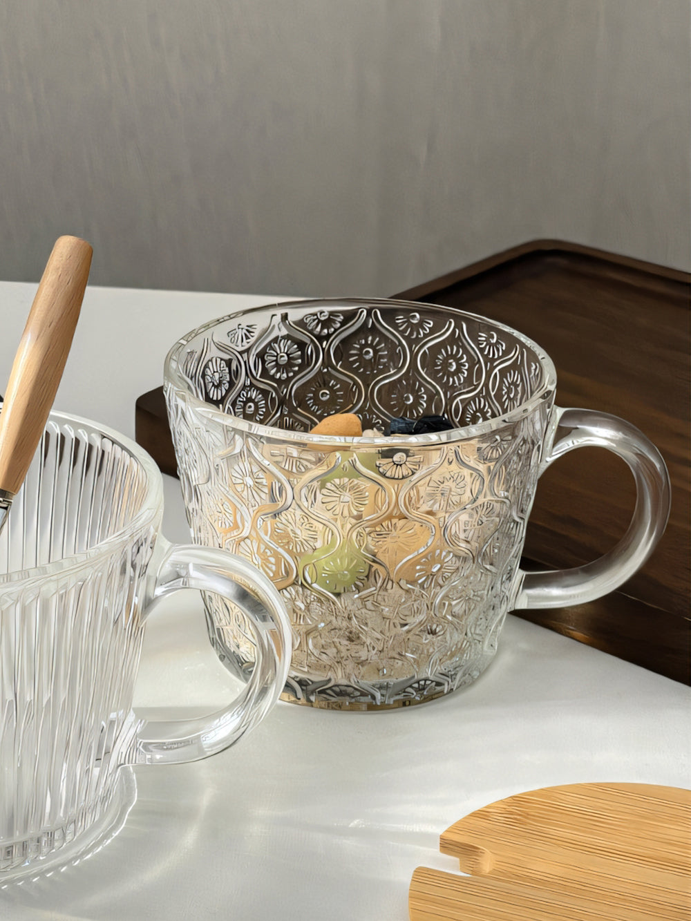IwaiLoft 「花海棠」 ガラス グラス 400ml ガラスマグ ガラスカップ コップ コーヒーカップ コーヒーマグ かわいい モーニングカップ ティーグラス 冷茶グラス 結露しにくい 電子レンジOK カフェコーヒー器具 来客用 誕生日プレゼント お祝い
