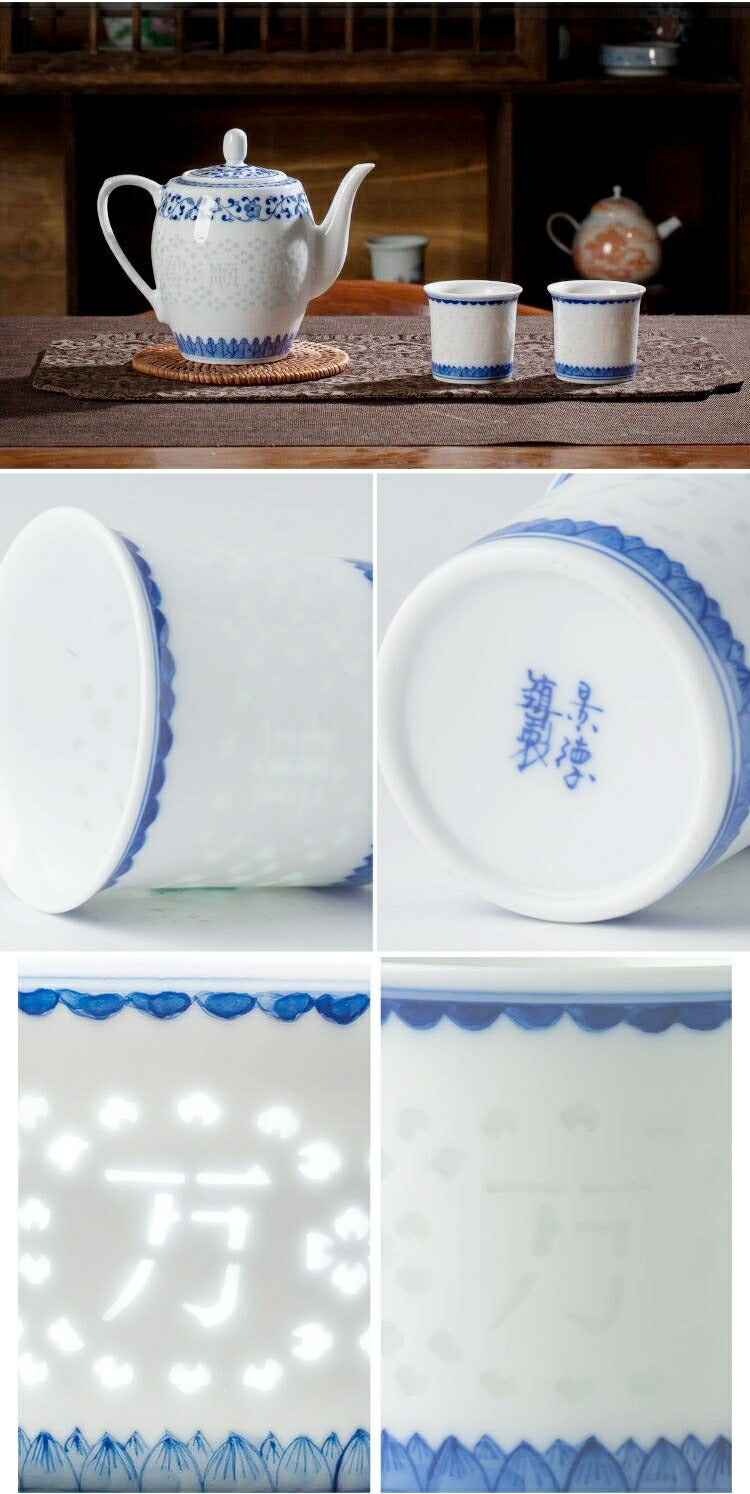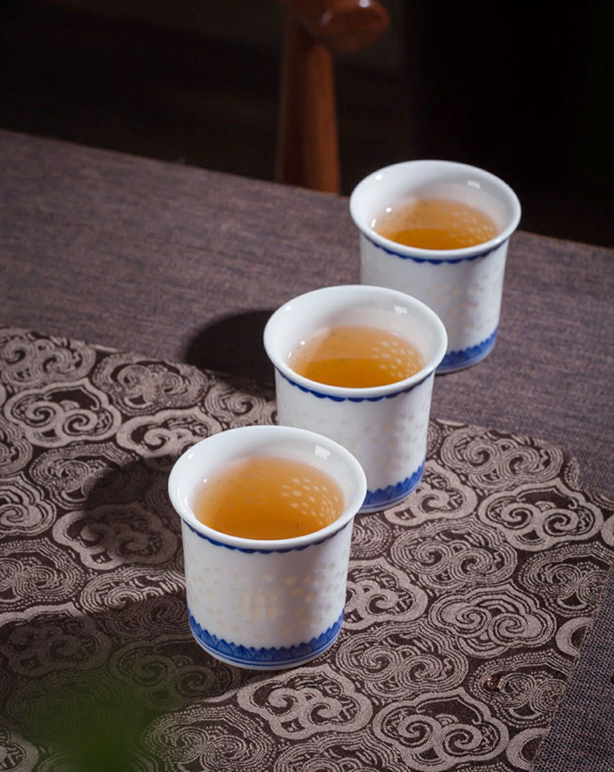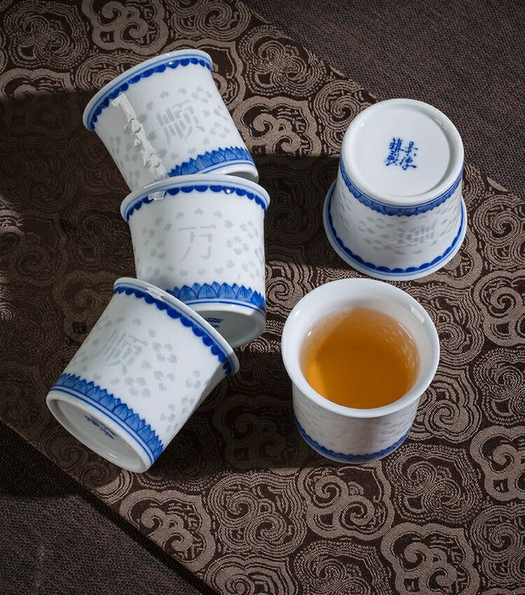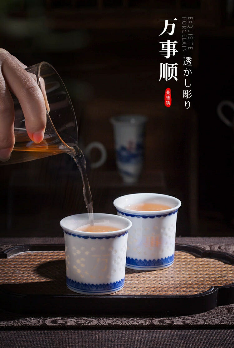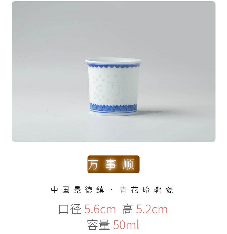 IwaiLoft【愛着を感じる・万事順】透かし彫り蛍手 盃 湯飲み ティーコップ ティーグラス 猪口 フリーカップ 50ml 玲瓏磁器 玲瓏磁 手作り 白磁 玲瓏 ほたるで 透彫 食器 磁器 ほたる 茶器 茶杯 中国 青花瓷 景徳鎮 磁器 茶芸