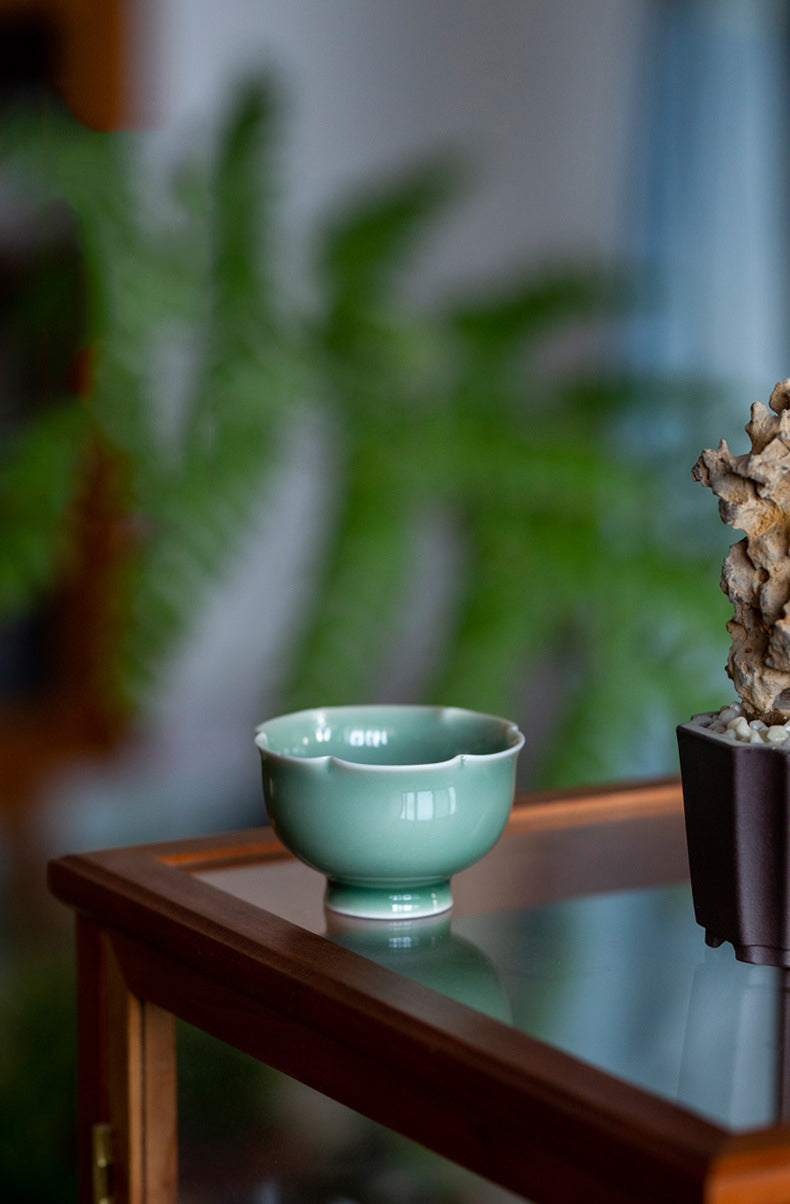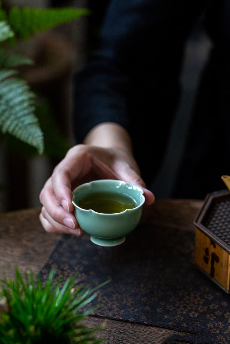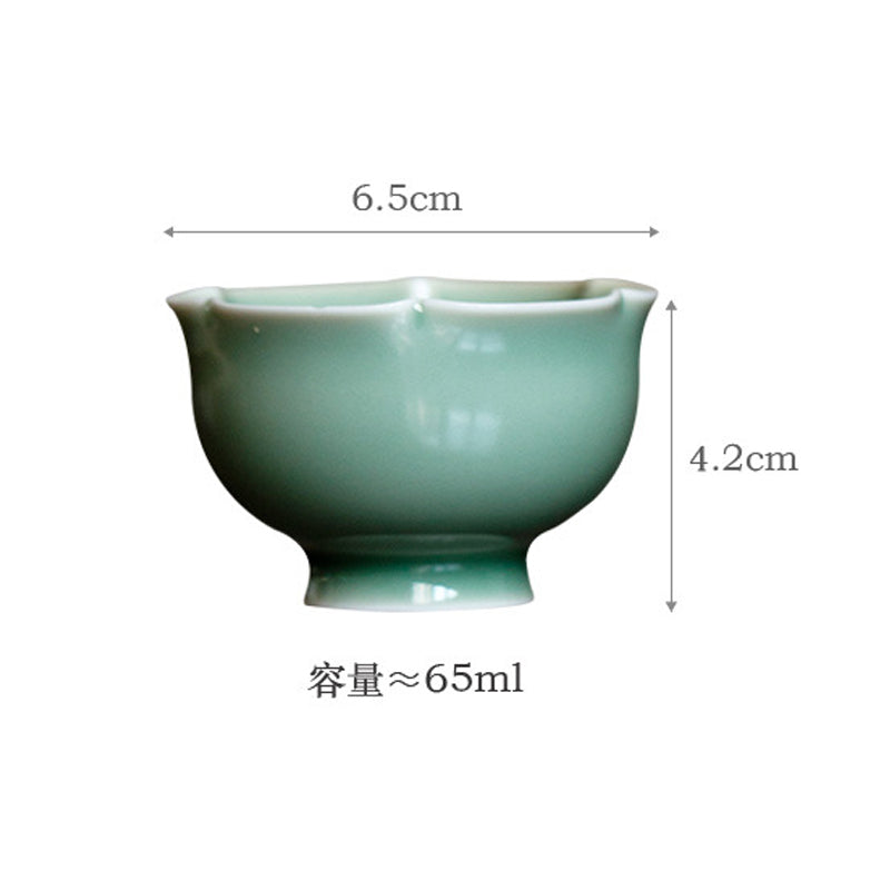 IwaiLoft 日常の何気ないひとときをぜひお楽しみください 素焼 茶杯 湯のみ 湯呑み お茶 カップ コップ グラス 陶磁器 来客用 お茶用品 ティーウェア 中国茶器 台湾茶器 贈り物にも 食洗機対応 電子レンジ対応 2点セット 65mL 青磁梅