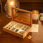 手作りのこだわりの品 天然木と海棠花をモチーフしたガラスの組み合わせは見た目もかわいく取り出し、片付けの気分も上がります。インテリアのアクセントにも◎