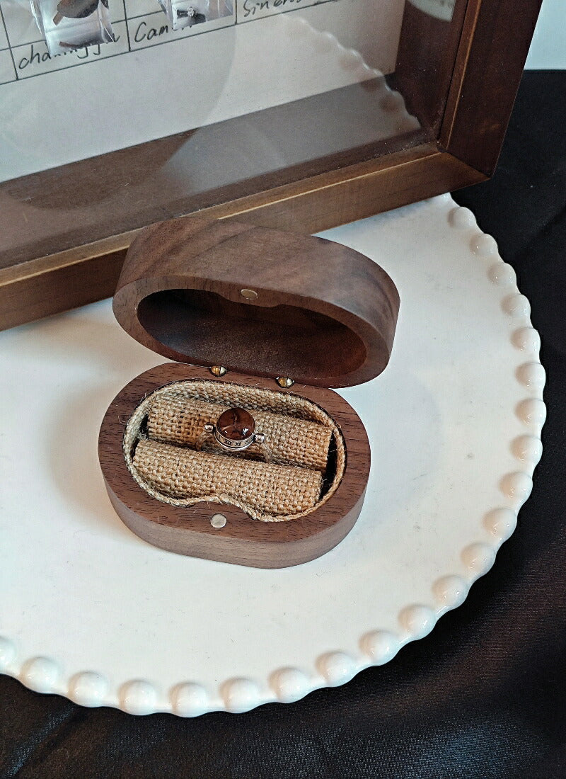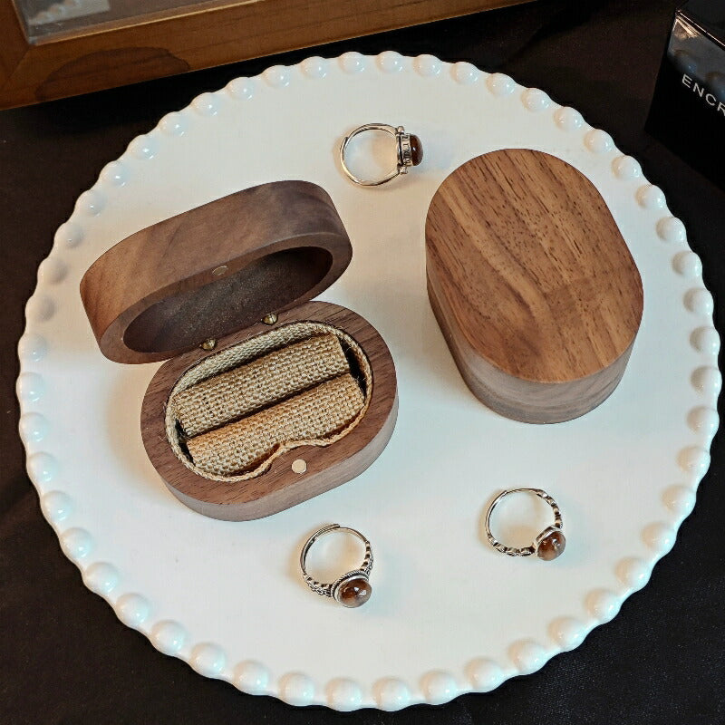 かわいい 指輪ケース リングケース 木製 ピアスケース 小 楕円形 収納ケース 小さい ミニサイズ おしゃれ リネン アクセサリーケース ウールナット 婚約指輪入れ 婚約指輪収納 持ち運び リングボックス 携帯 外出 旅行便利 結婚式 結婚お祝い 母の日 プレセント IwaiLoft