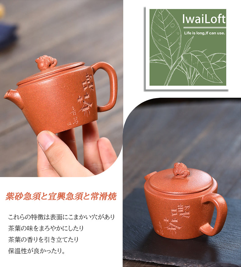 IwaiLoft 優雅な時間と心のゆとり 紫砂 茶壺 急須 オシャレ 紫砂壷 中国茶器 本番 中国宜興 ハンドメイド・手作り 【蟾櫨染】【送無】 100mL