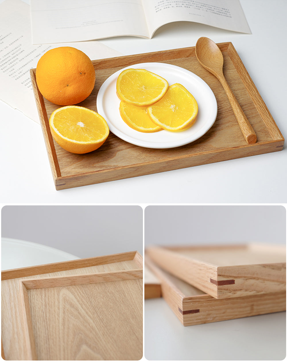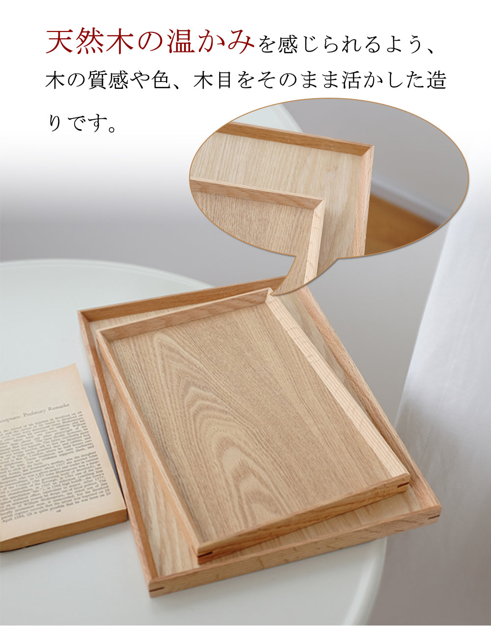 IwaiLoft 天然木製 トレー お盆 羽反 長角膳 28cm/34cm/40cm 白木 トレー 北欧 おしゃれ 木製 カフェ ナチュラル トレイ お盆 スタッキング 収納 業務用 ランチョンマット 無印 ノーマーク ニトリ 無地