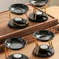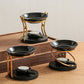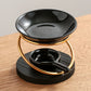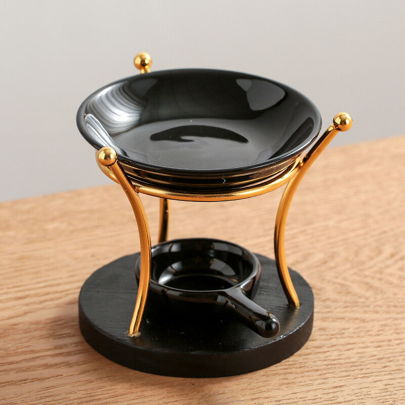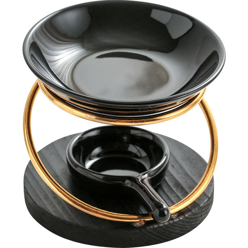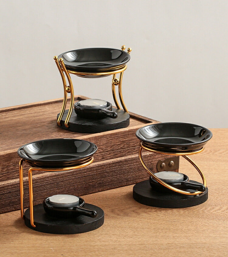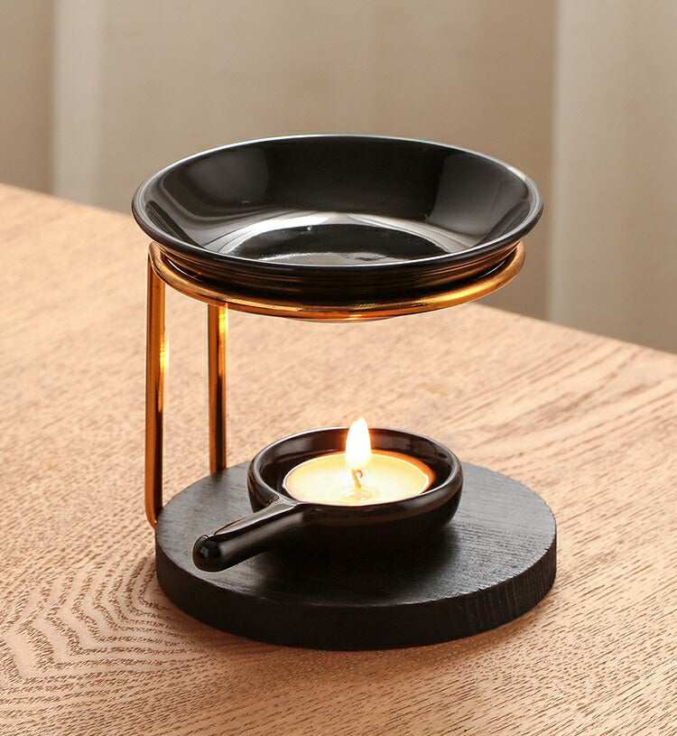 IwaiLoft 新型 黒 アロマポット 陶器 アロマ炉 茶香炉 アロマキャンドルホルダー キャンドルバーナー アロマバーナー アロマディフューザー 木製