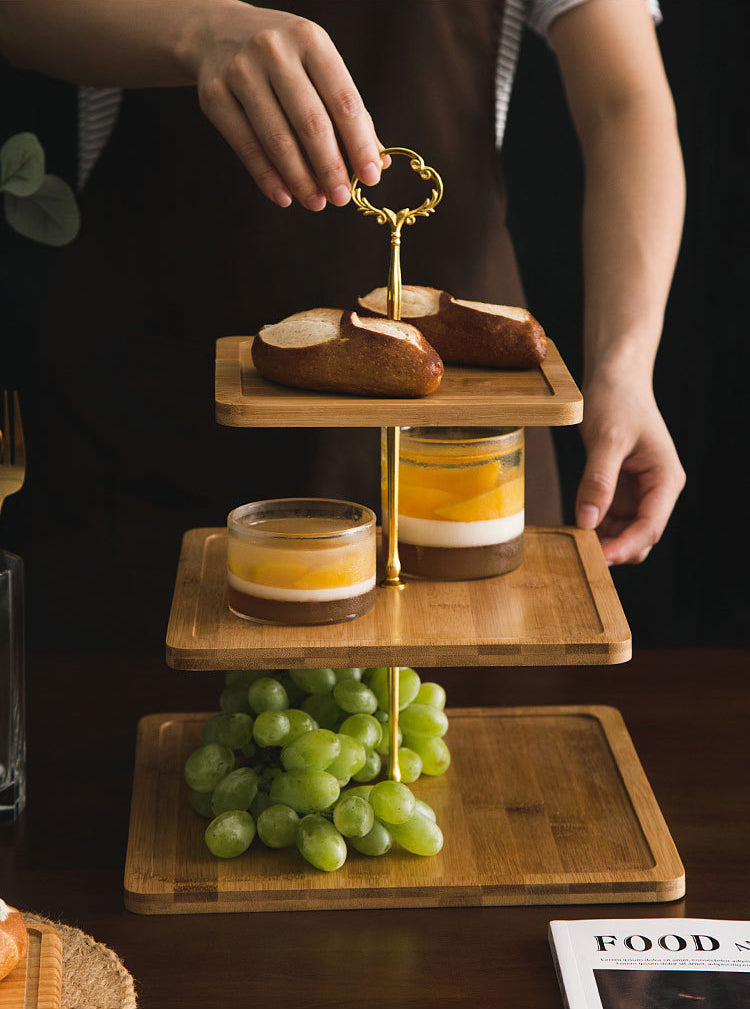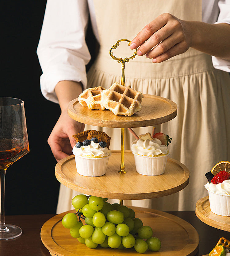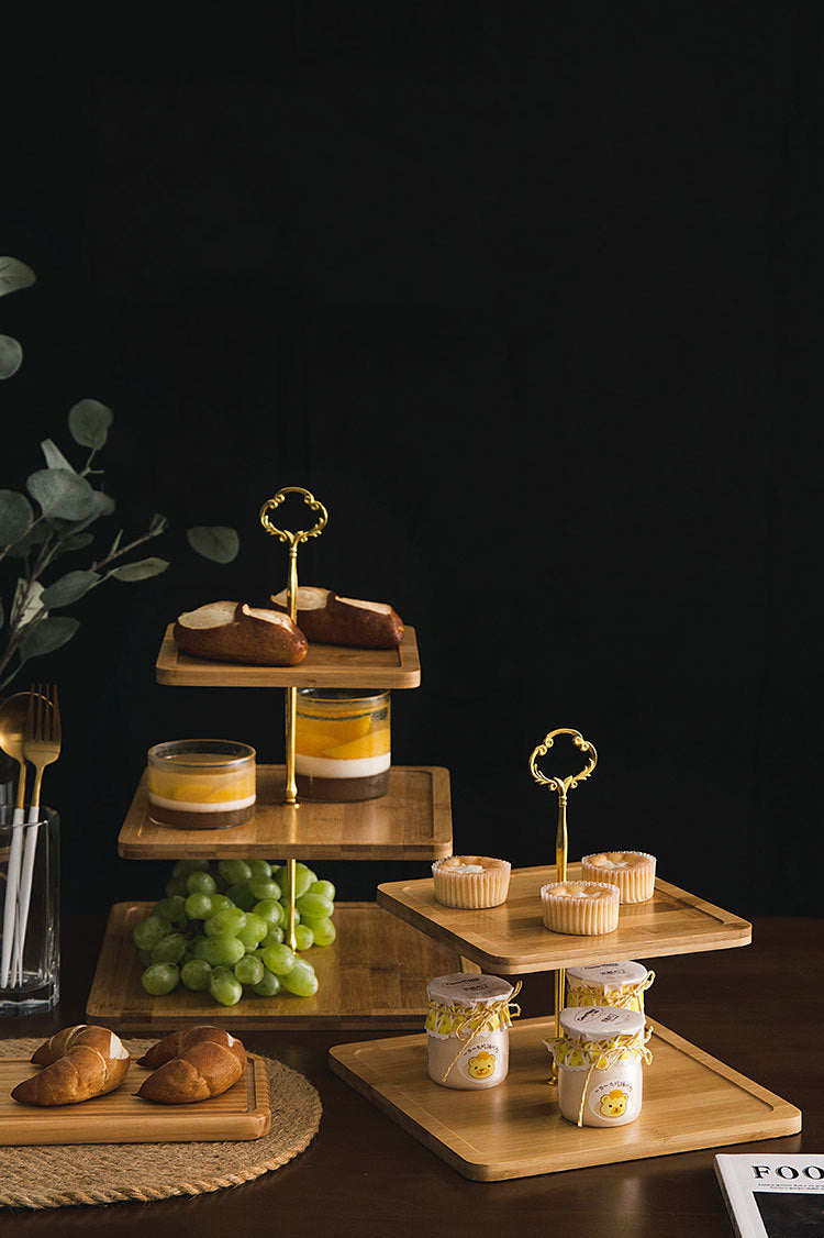 IwaiLoft おしゃれで優雅なひととき ケーキスタンド ケーキスタンド ティースタンド 小さい アフタヌーンティー お菓子 プチケーキ おもてなし スイー 竹製