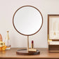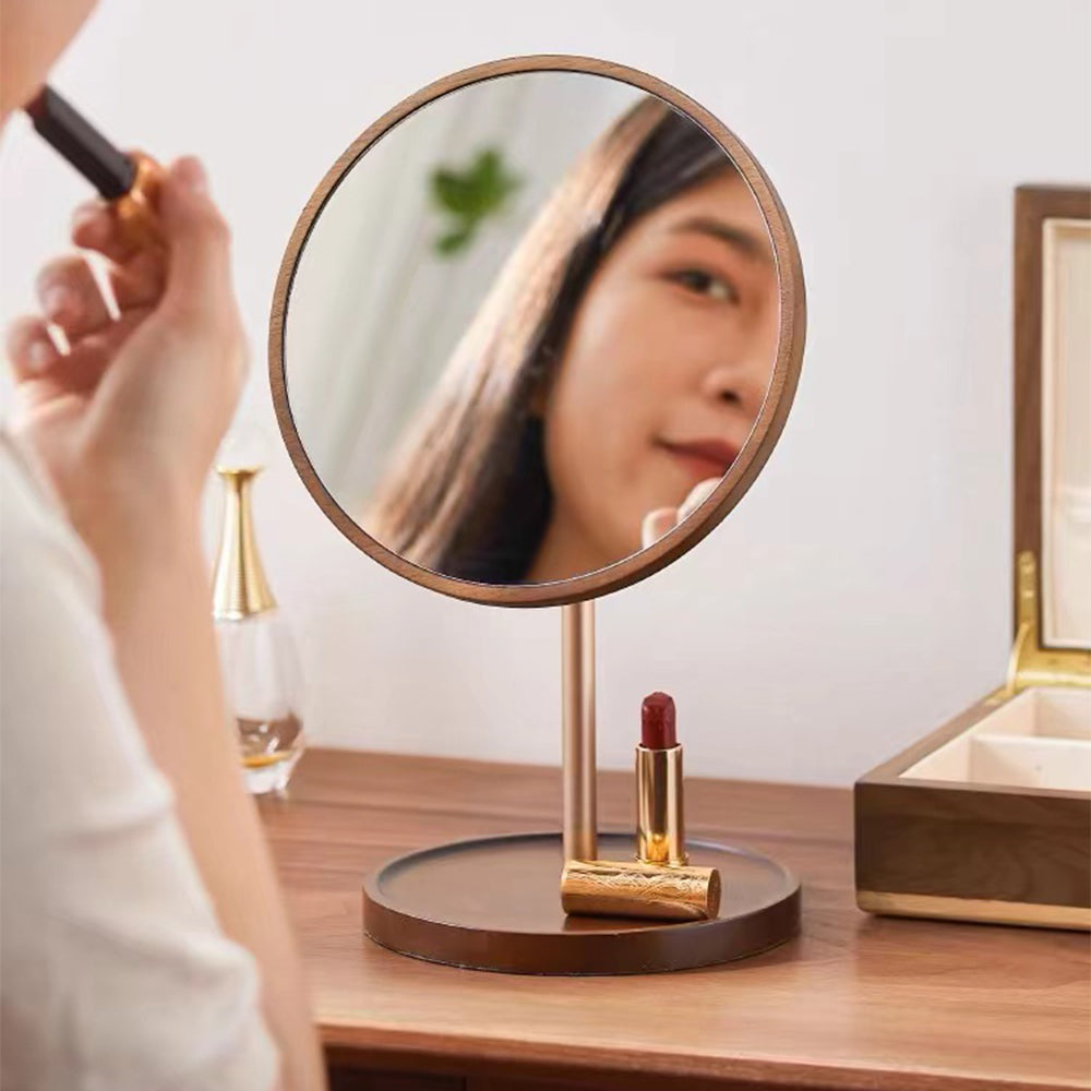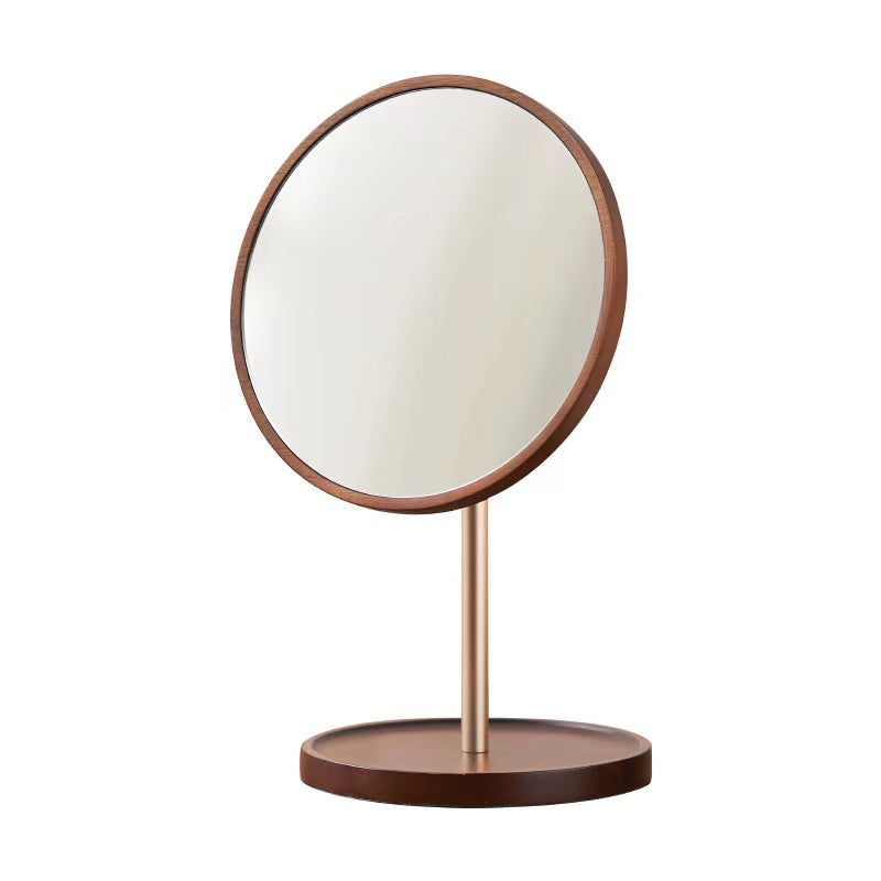 インテリアにもなる円形卓上スタンドミラー クルミ材 天然木女優ミラー ギフトにおすすめ