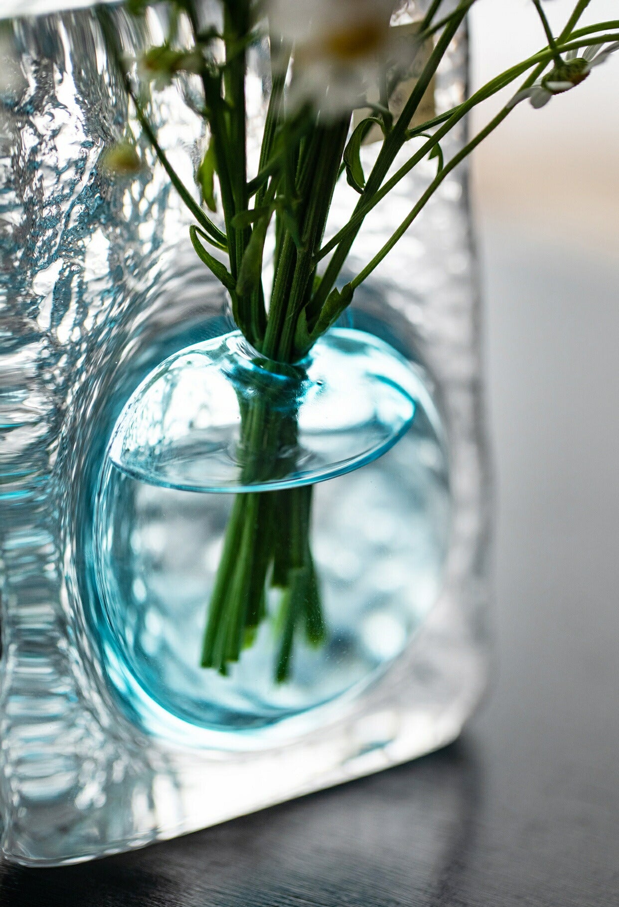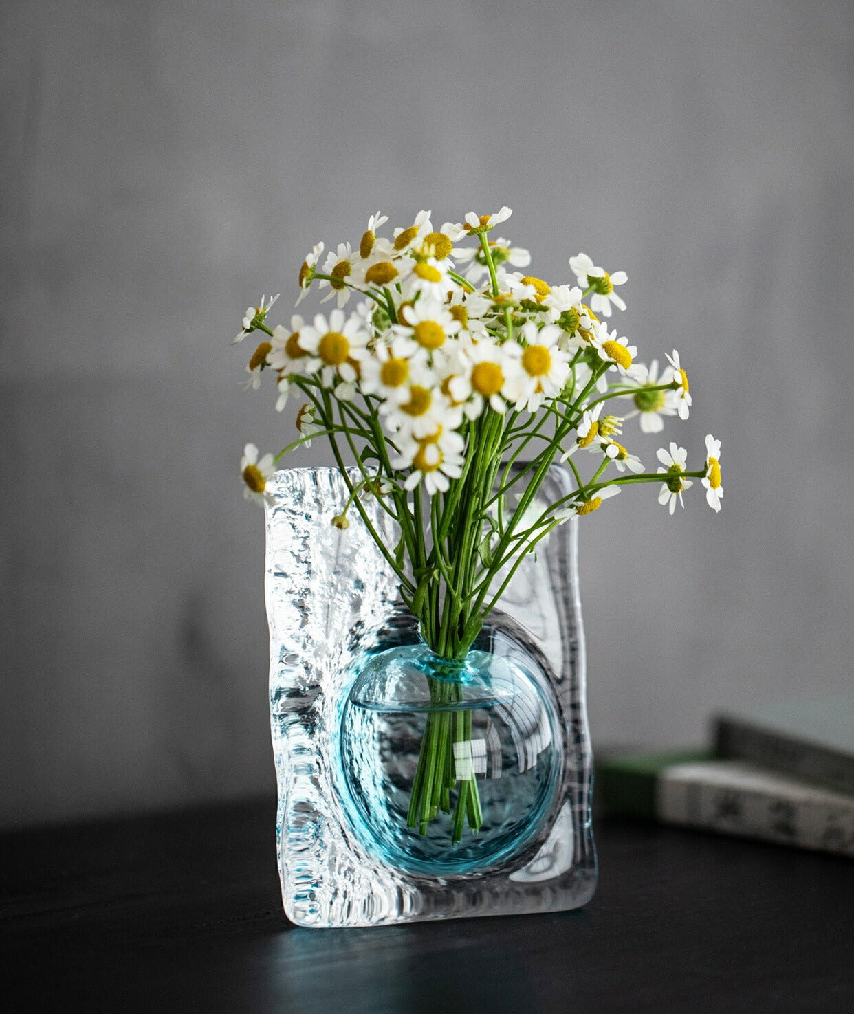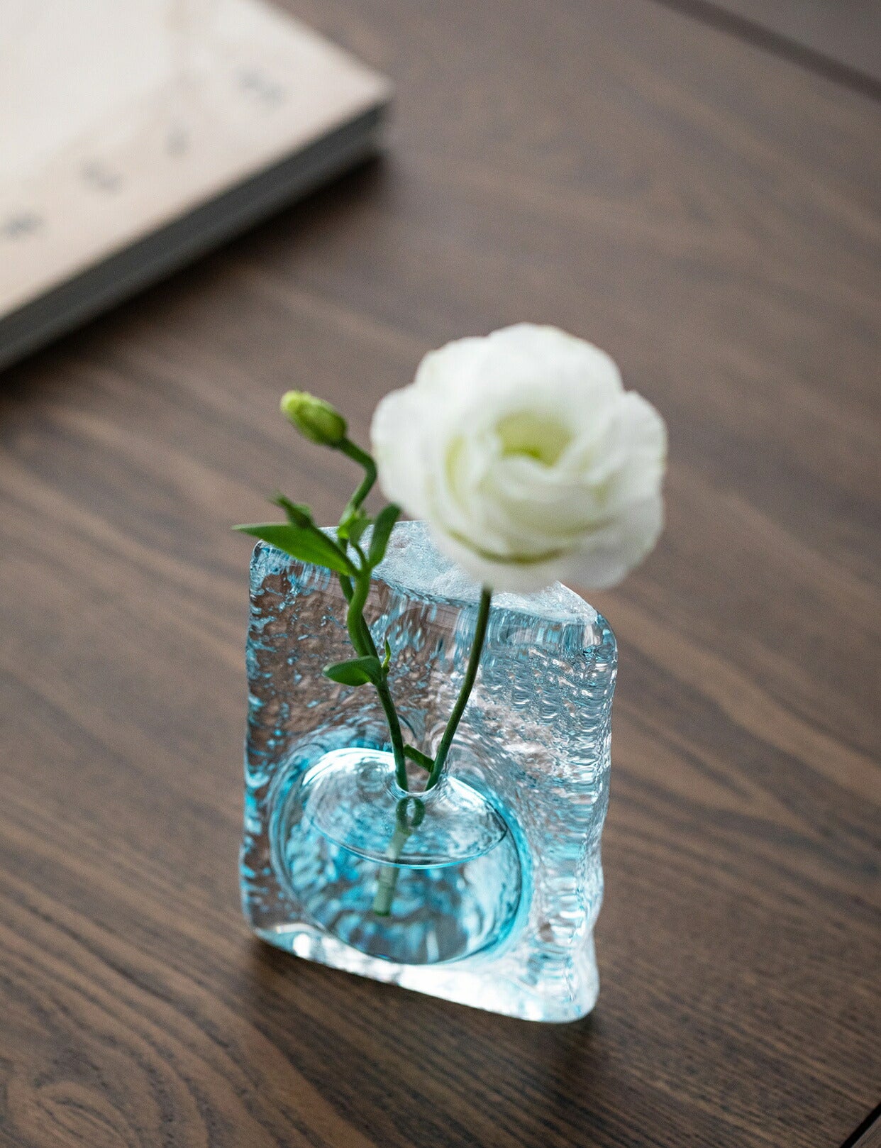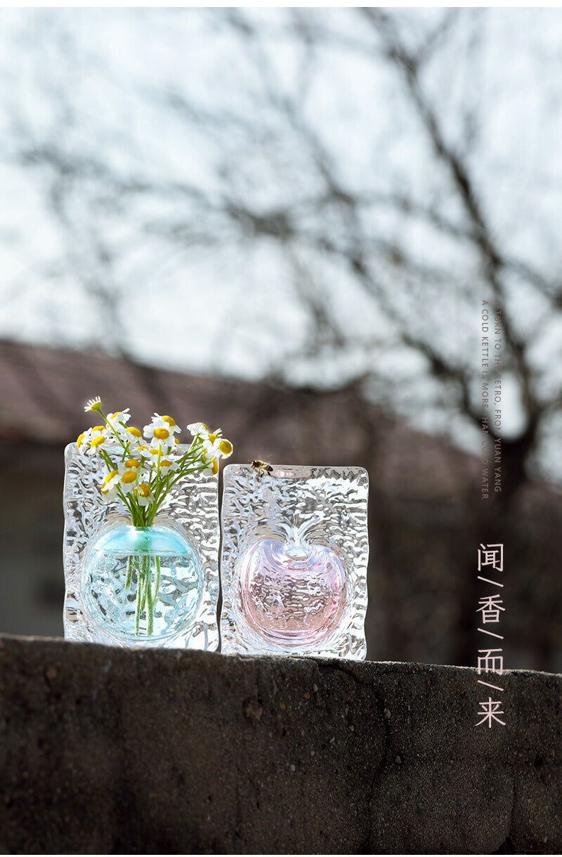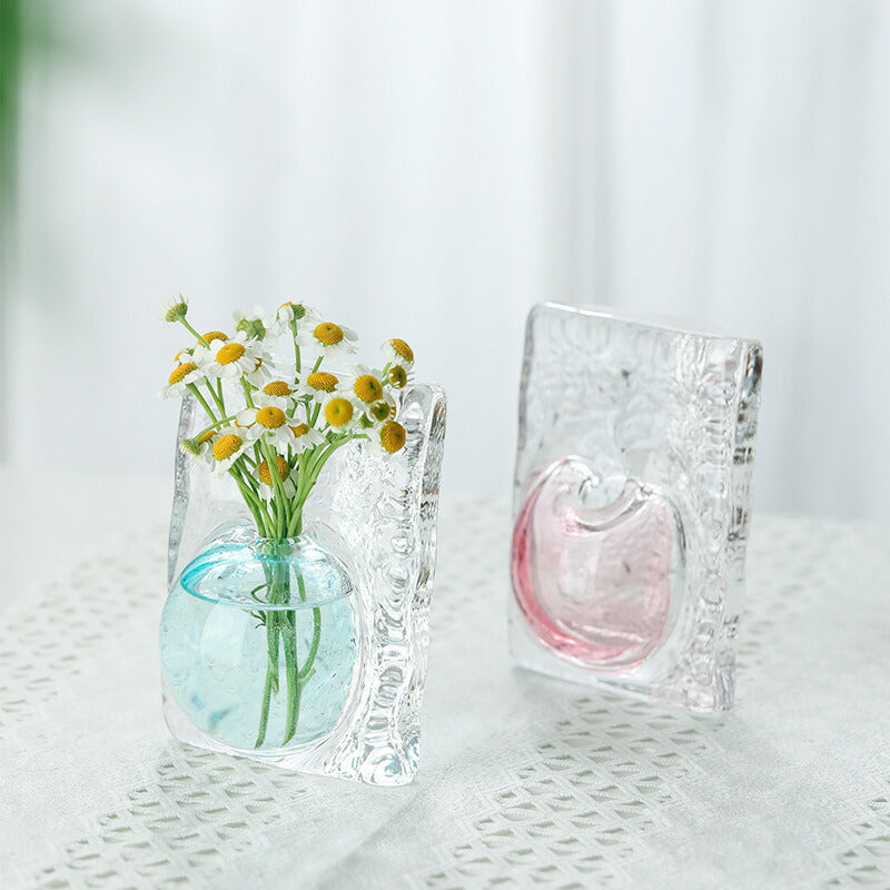 IwaiLoft Heart of the Ocean 手作り 花瓶 ガラス 一輪挿し フラワーベース 海の心 ミニ 小 インテリア おしゃれ 水栽培 ボトル