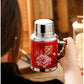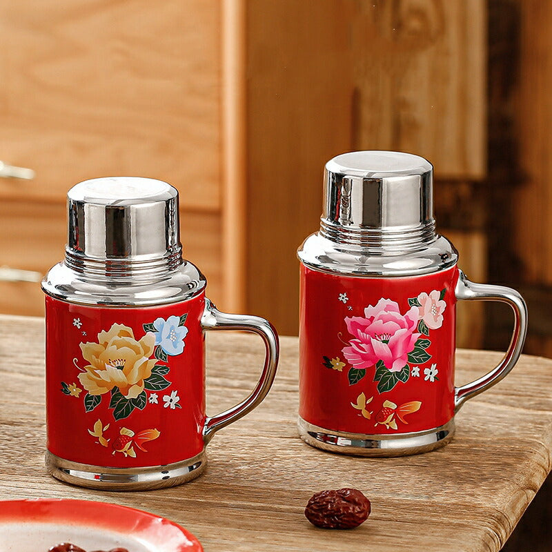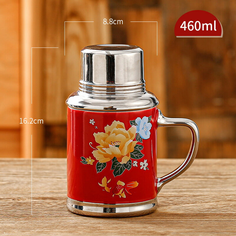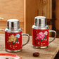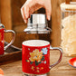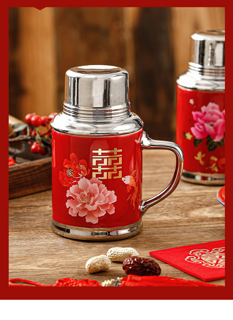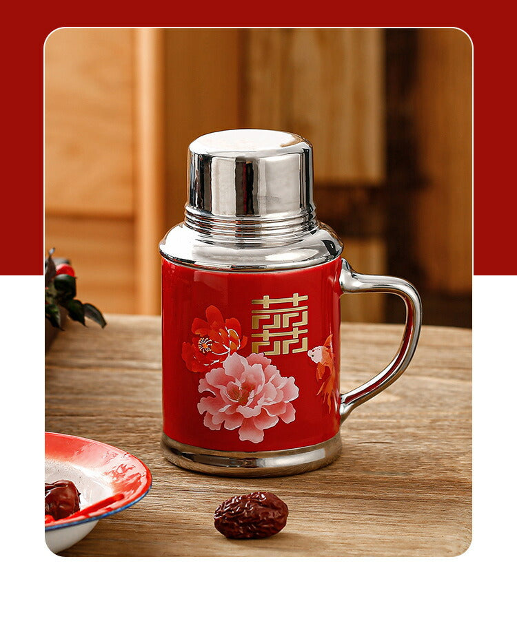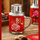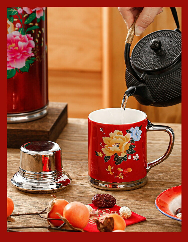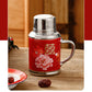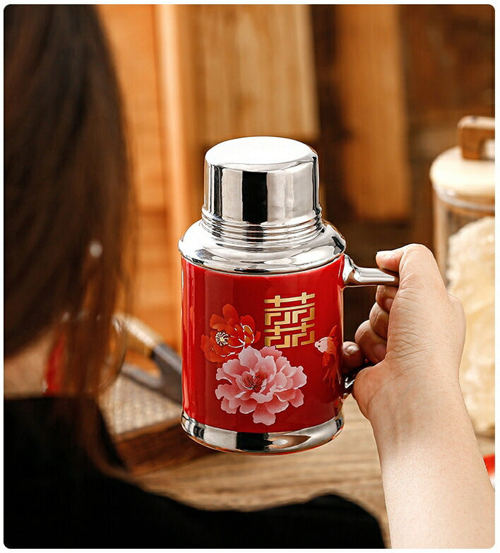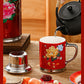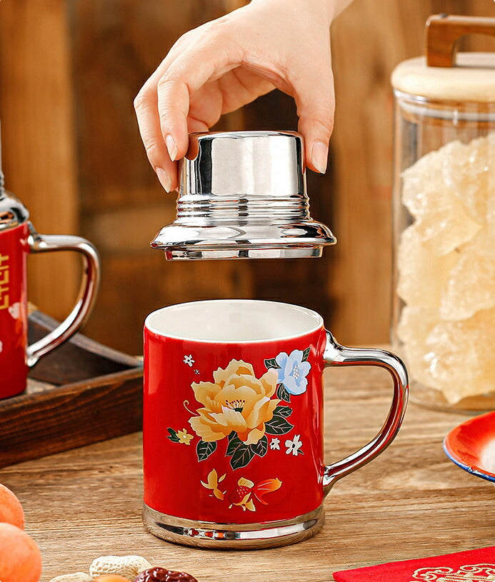 IwaiLoft レトロ アンティーク調 家飲み カップ マグ コップ コーヒーカップ レッド 赤い 朱 喜喜 コーヒーマグ かわいい 花柄 牡丹柄 モーニングカップ 中華風 来客用 誕生日 母の日 プレゼント 結婚お祝い