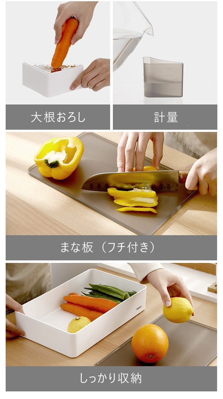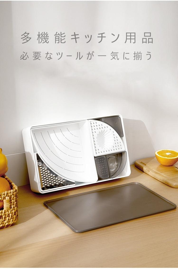 IwaiLoft 【あったら便利・一つで8役】多機能 キッチンツール セット まな板 カッティングボード 軽量 軽い 滑り止め 北欧 おしゃれ 卵黄分離器 大根おろし おろし器 しぼり器 バスケット 洗い桶 洗浄容器 果物 野菜の洗浄用 四角形 コンパクト キッチン用品