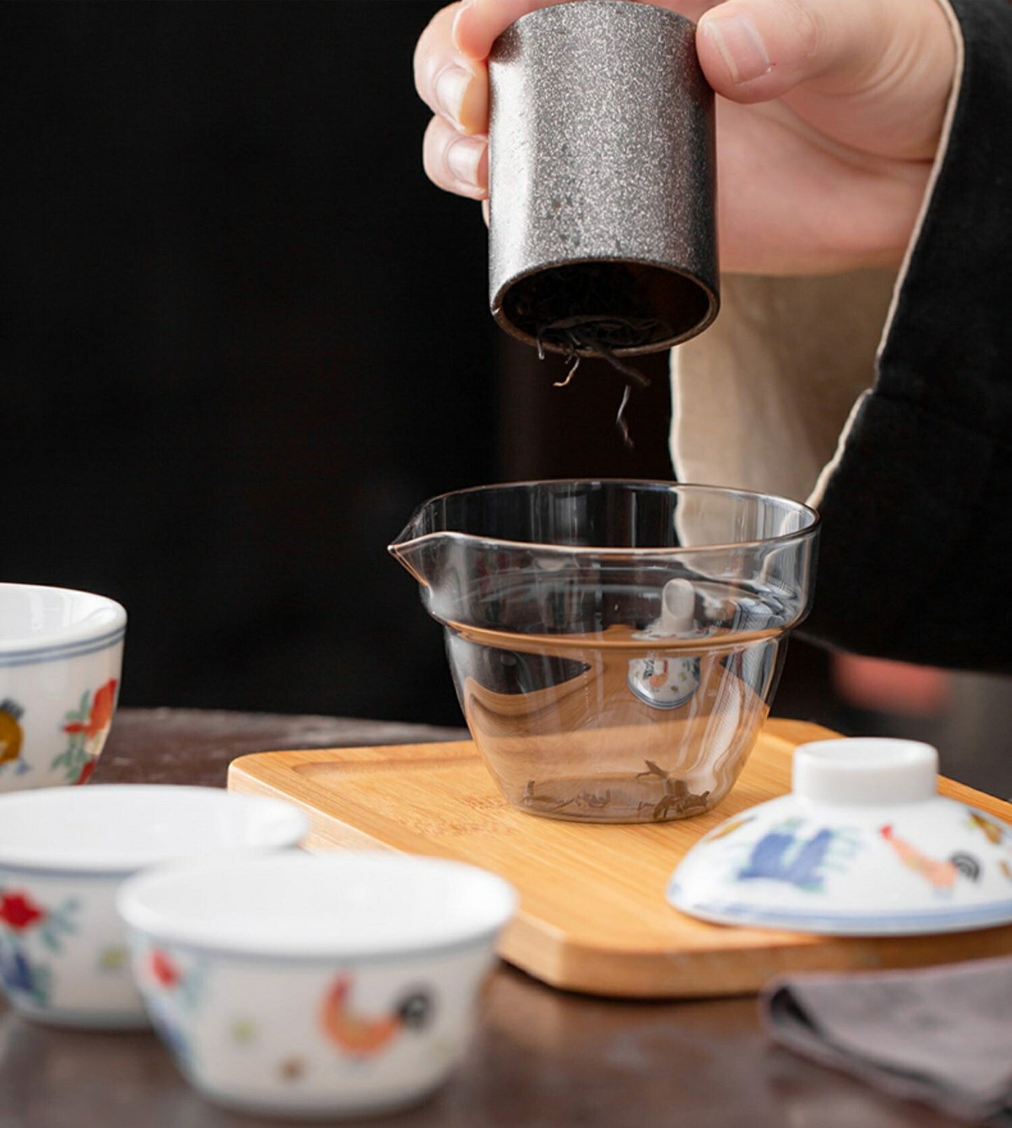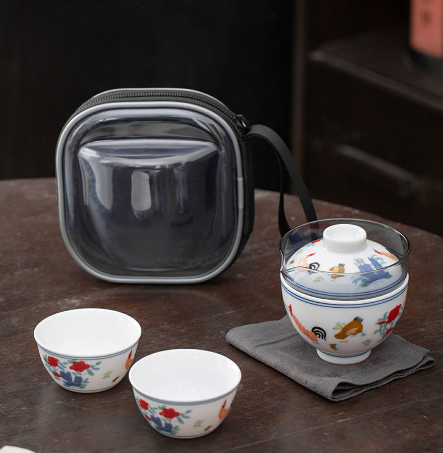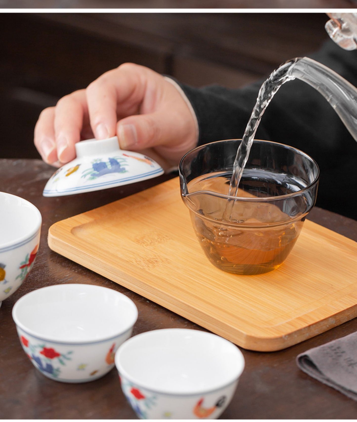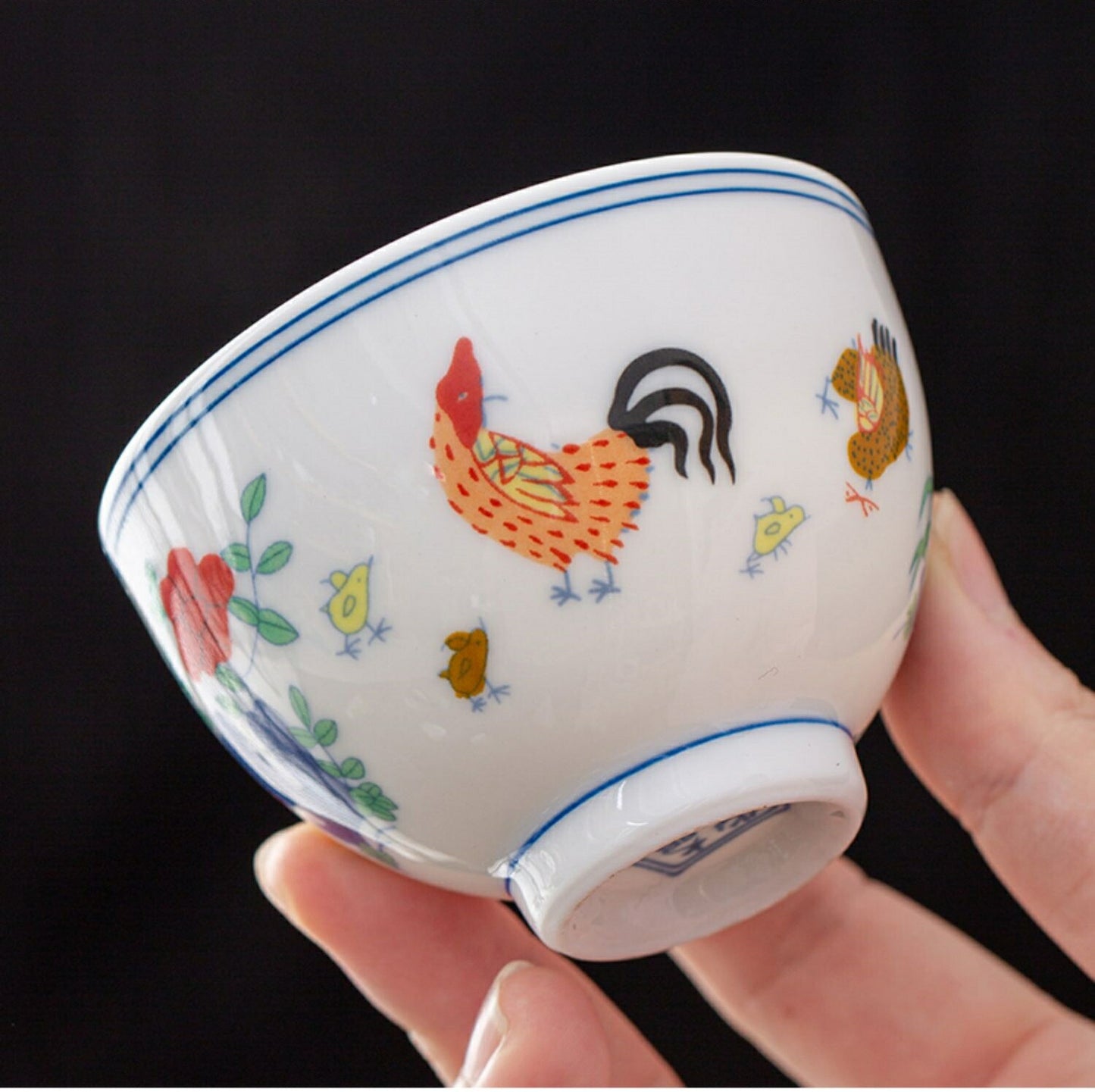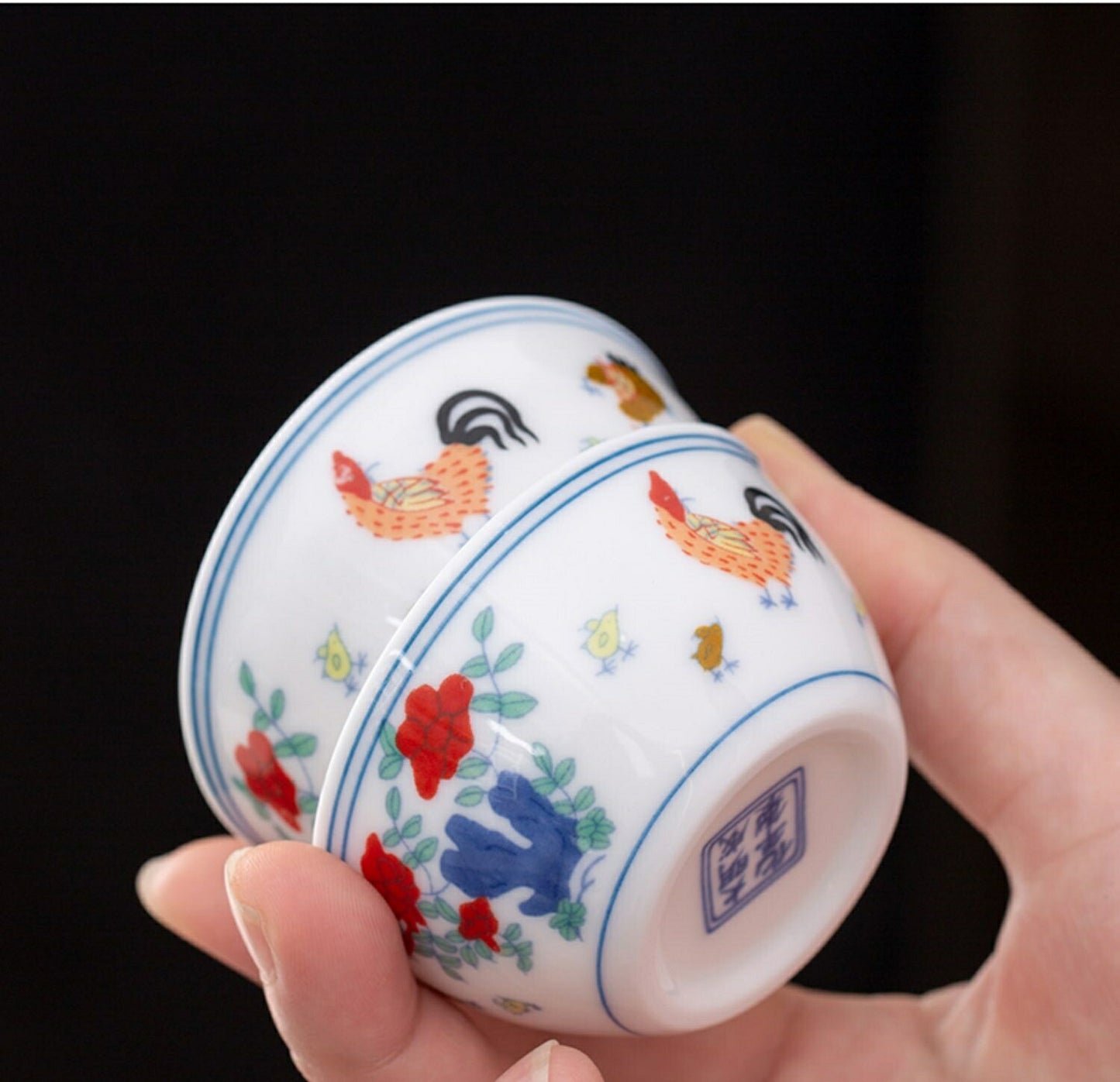 IwaiLoft 鶏 2客 茶器セット 宝瓶 蓋碗 ガラス サーバー 湯冷まし 品茗杯 茶杯 湯吞み 小 白磁 茶器 磁器 ホワイト 白い食器 ティーポット セット ティーカップ 中国茶器 明成化闘彩鶏缸杯 台湾茶器 旅用 アウトドア 父の日 母の日 プレゼント