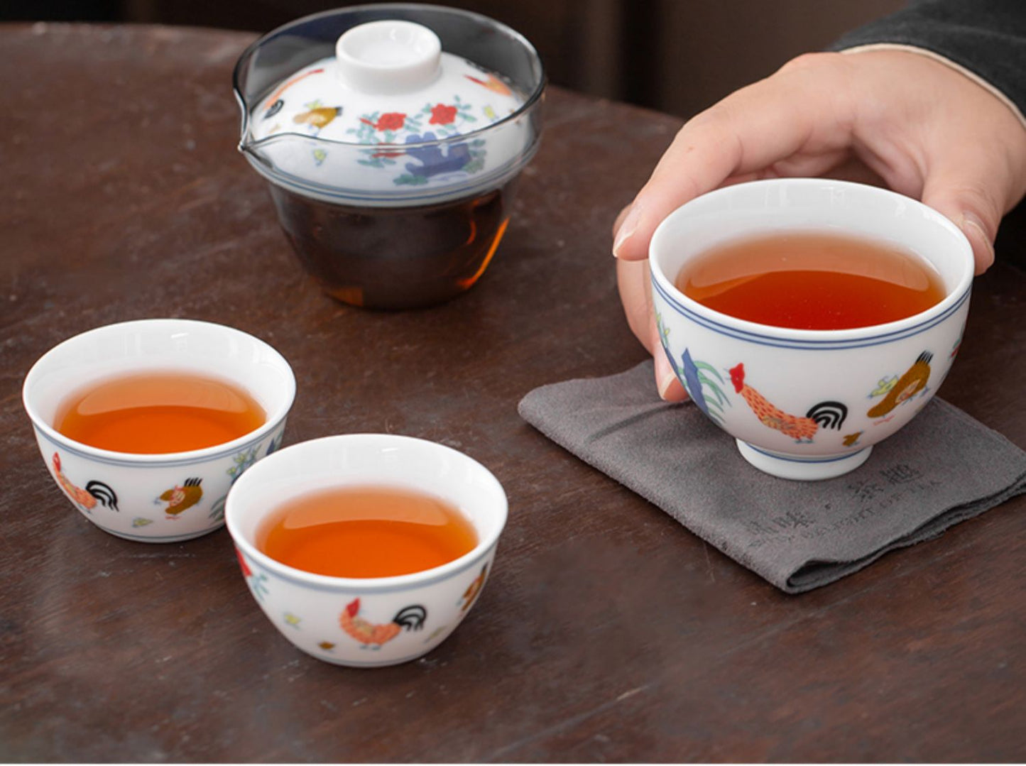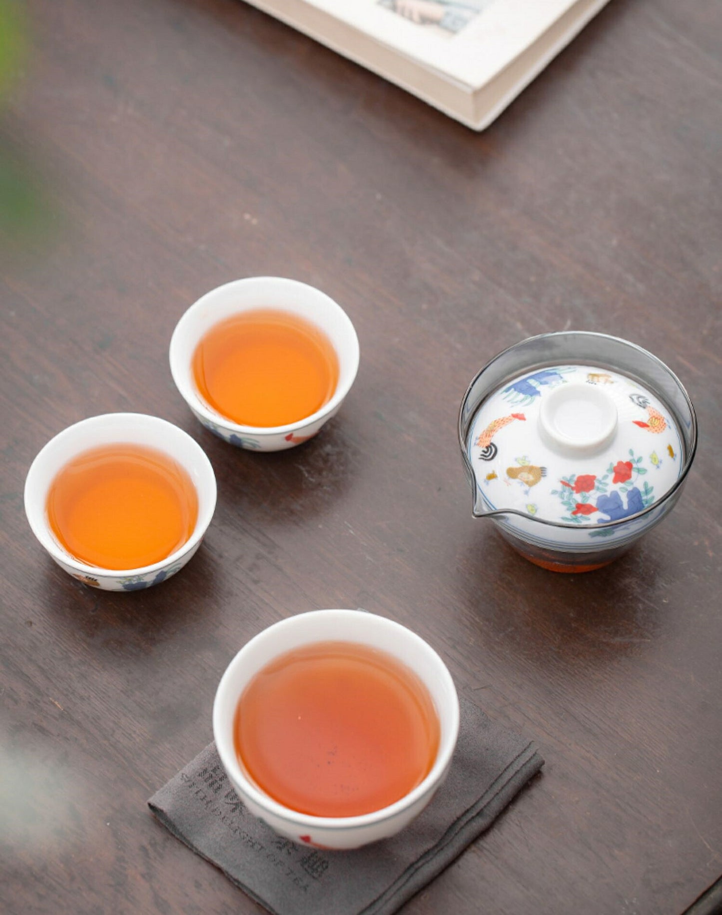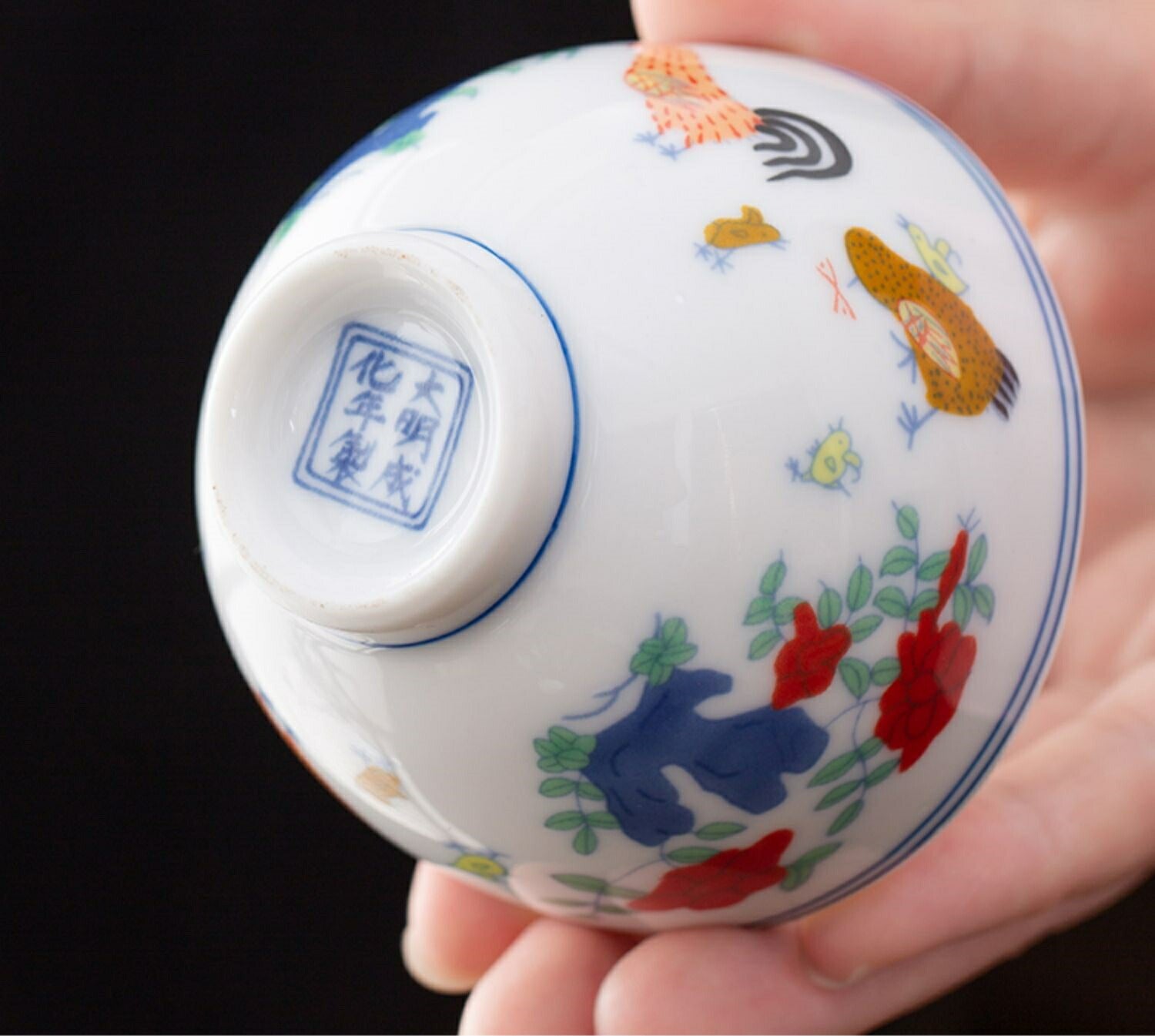 蓋碗×1 コップ×2 湯冷まし×1 。シンプルでやっぱりいい。ほっと一息、IwaiLoftの茶器で、ココロもあったかお茶の時間。景徳鎮 大明成化 闘彩茶杯