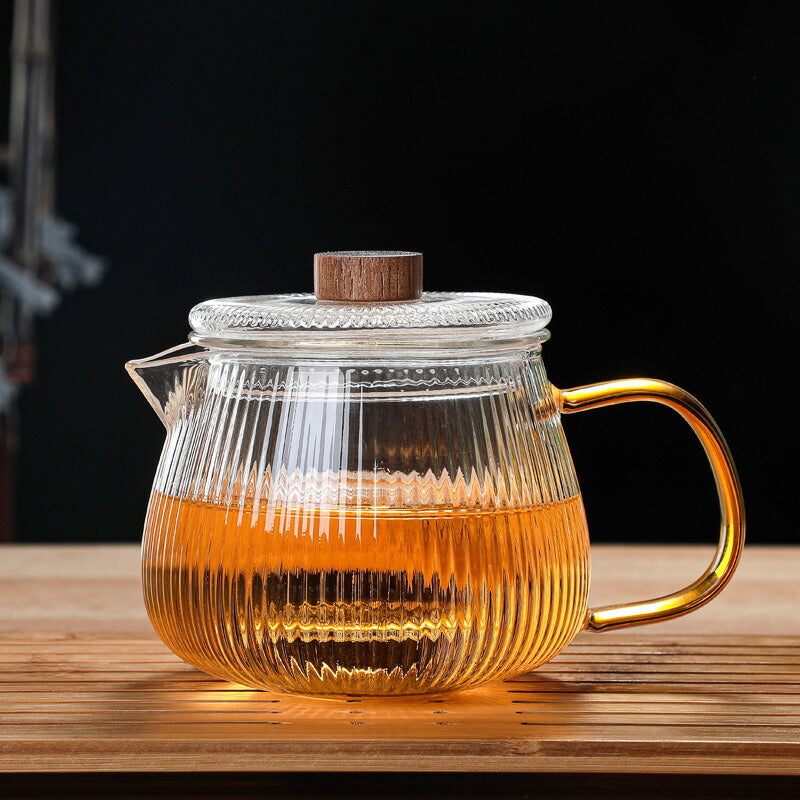 なつめ 直火 新作 耐熱ガラス ティーポット 筋紋 筋入 ガラス ガラスポット ガラス急須 小 500ml 600ml 茶こし付き 木製つまみ 紅茶ポット コーヒーサーバー コーヒーポット ガラスピッチャー 片口 酒器 ハーブティー ポット アフタヌーンティー 母の日 プレゼント IwaiLoft