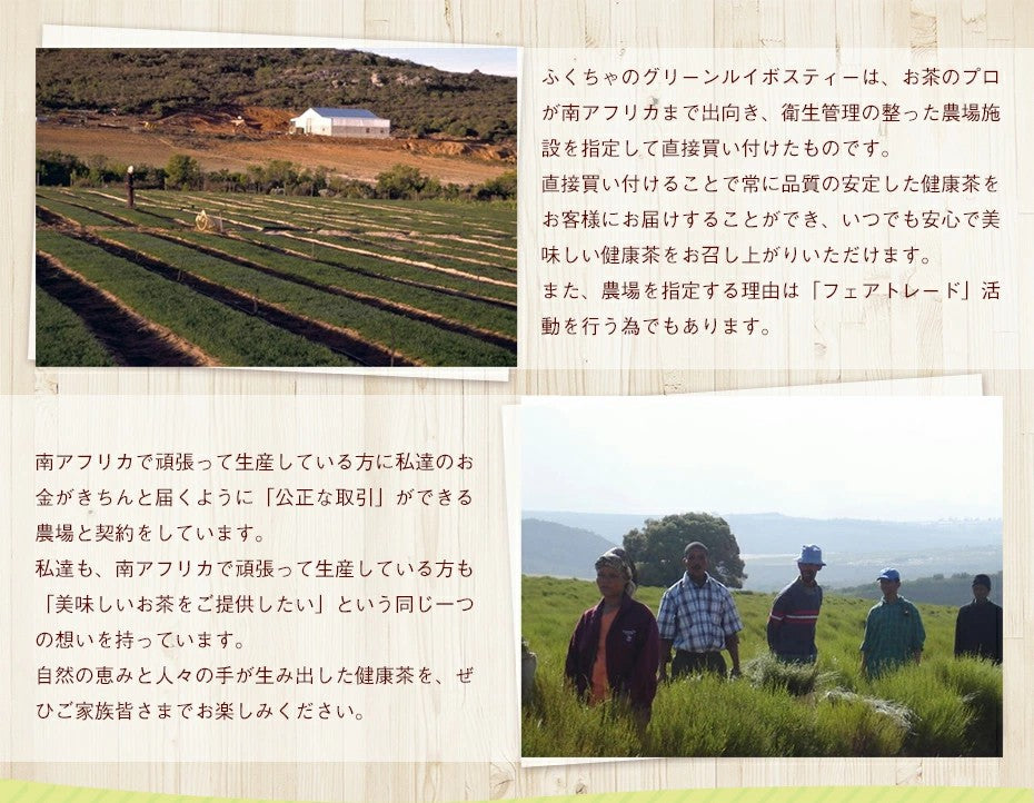 | 原材料名(原産国) | グリーンルイボス(南アフリカ共和国) |