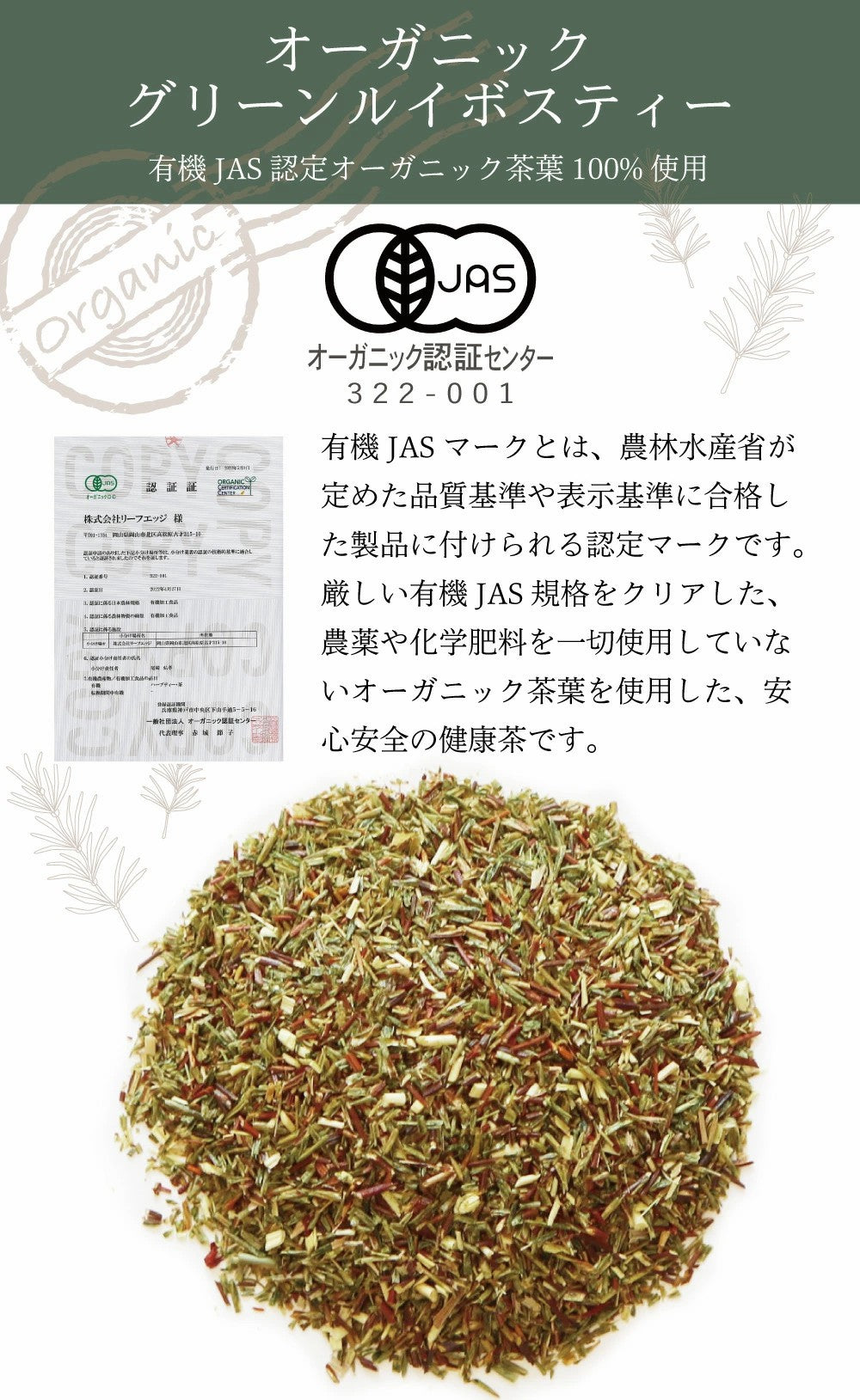 オーガニック グリーンルイボスティー 100包×1袋│3袋│6袋│11袋│ ティーバッグ 有機JAS ノンカフェイン 健康茶 美容茶 グリーン ルイボス 茶 ruibosu ハーブティー 送料無料 ミネラル 子育て 育児 お茶 がぶ飲み ふくちゃ