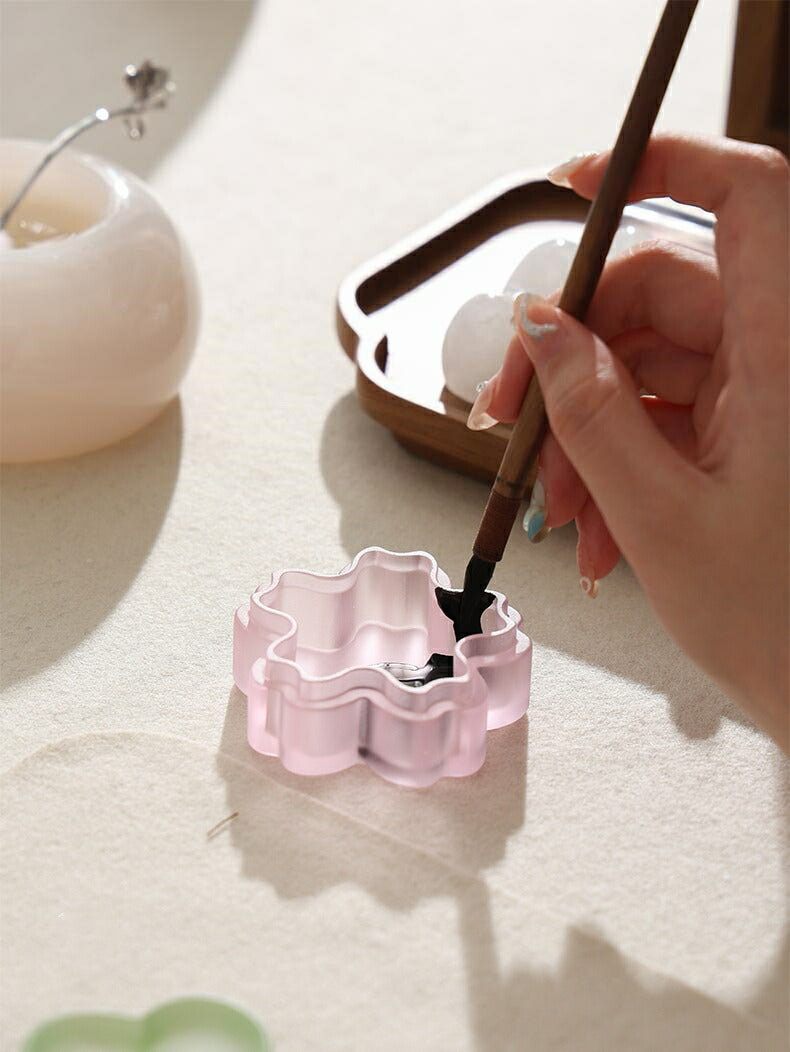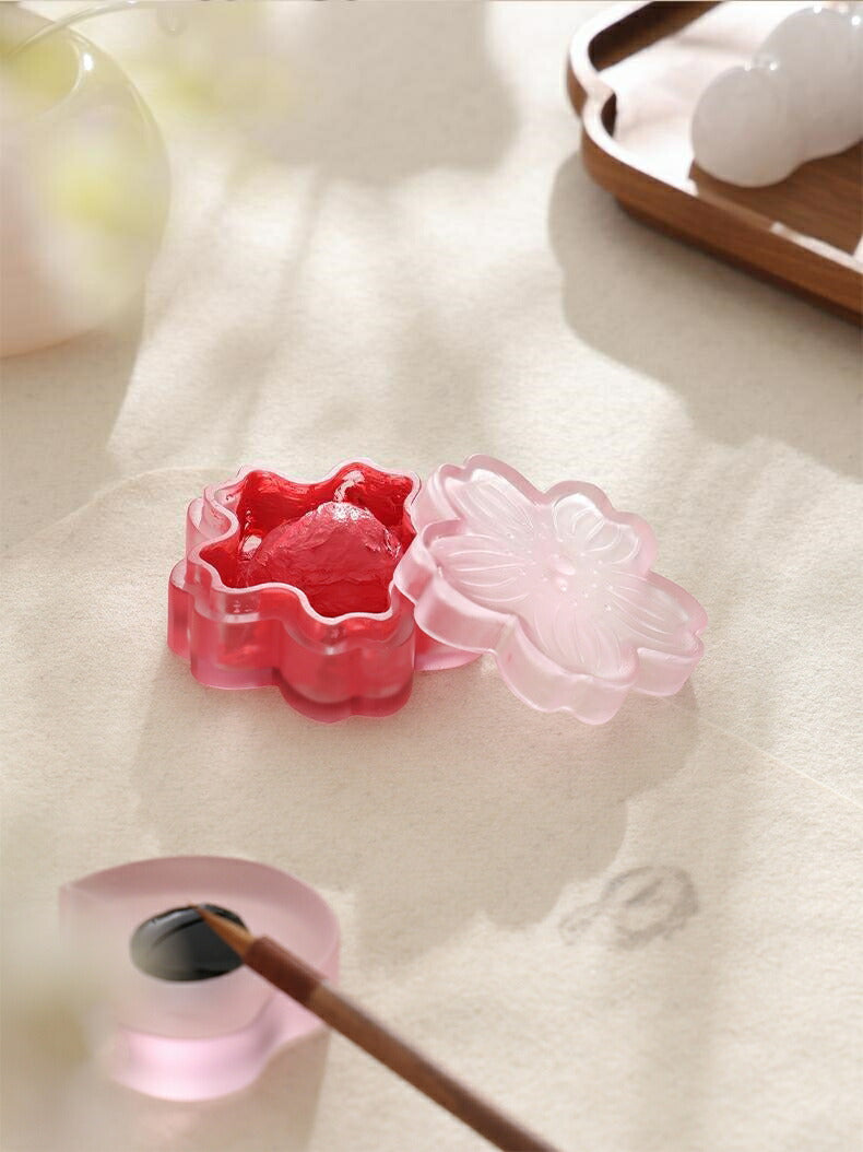 桜 ガラスケース さくら 小物入れ 小箱 ガラスの箱 ガラス 線香立て 香炉 墨池 小 天池 てんち 小さな箱 花形 蓋付き 水彩パレット 塗装 墨皿 絵皿 印泥ケース 朱肉ケース 瑠璃 ミニ 小物ケース アクセサリーケース 透明 書道用具 水墨画用品 ガラスキャニスター かわいい