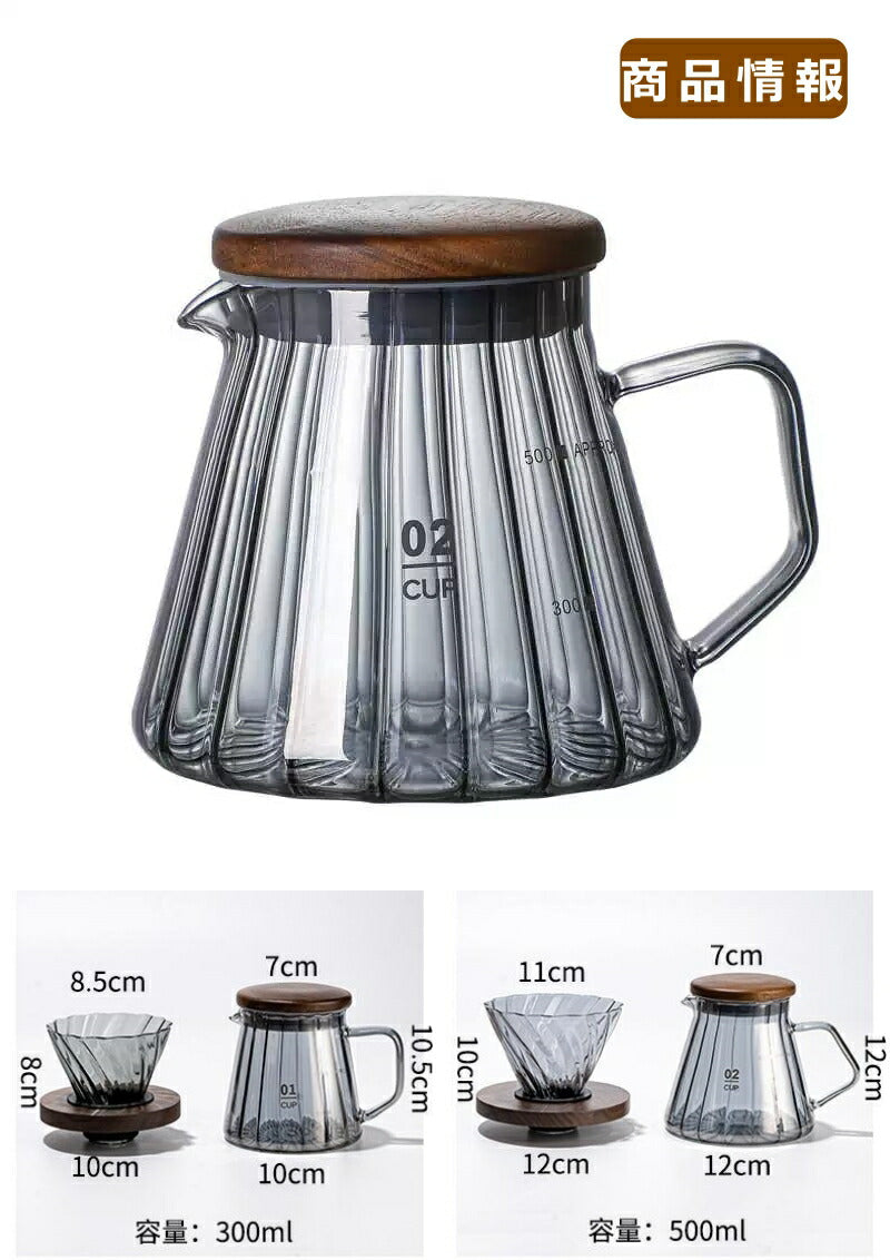 IwaiLoft 新作 コーヒーサーバー 300ml 500ml 木製蓋 直火対応 モールガラス ガラスポット ガラスドリッパー セット コーヒーポット コーヒードリッパー 耐熱ガラス ハンドドリッパー ドリッパーコーヒー コーヒー用品 珈琲 おしゃれ 北欧 母の日 父の日 プレゼント