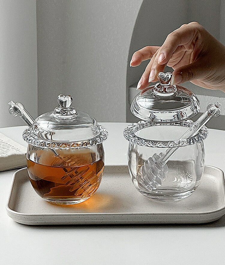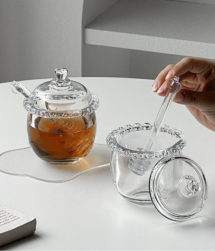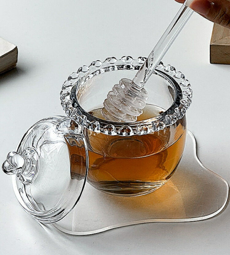 らくらく気軽に使える ガラス ハニーポット 透明 おしゃれ はちみつ容器 透明 蓋付 攪拌棒付き 蜂蜜ボトル 蜂蜜入れ かわいい ハニーディスペンサー はちみつサーバー ハニーサーバー ハチミツ はちみつ 蜂蜜 保存缶 保存容器 ガラス瓶 ガラス製 IwaiLoft