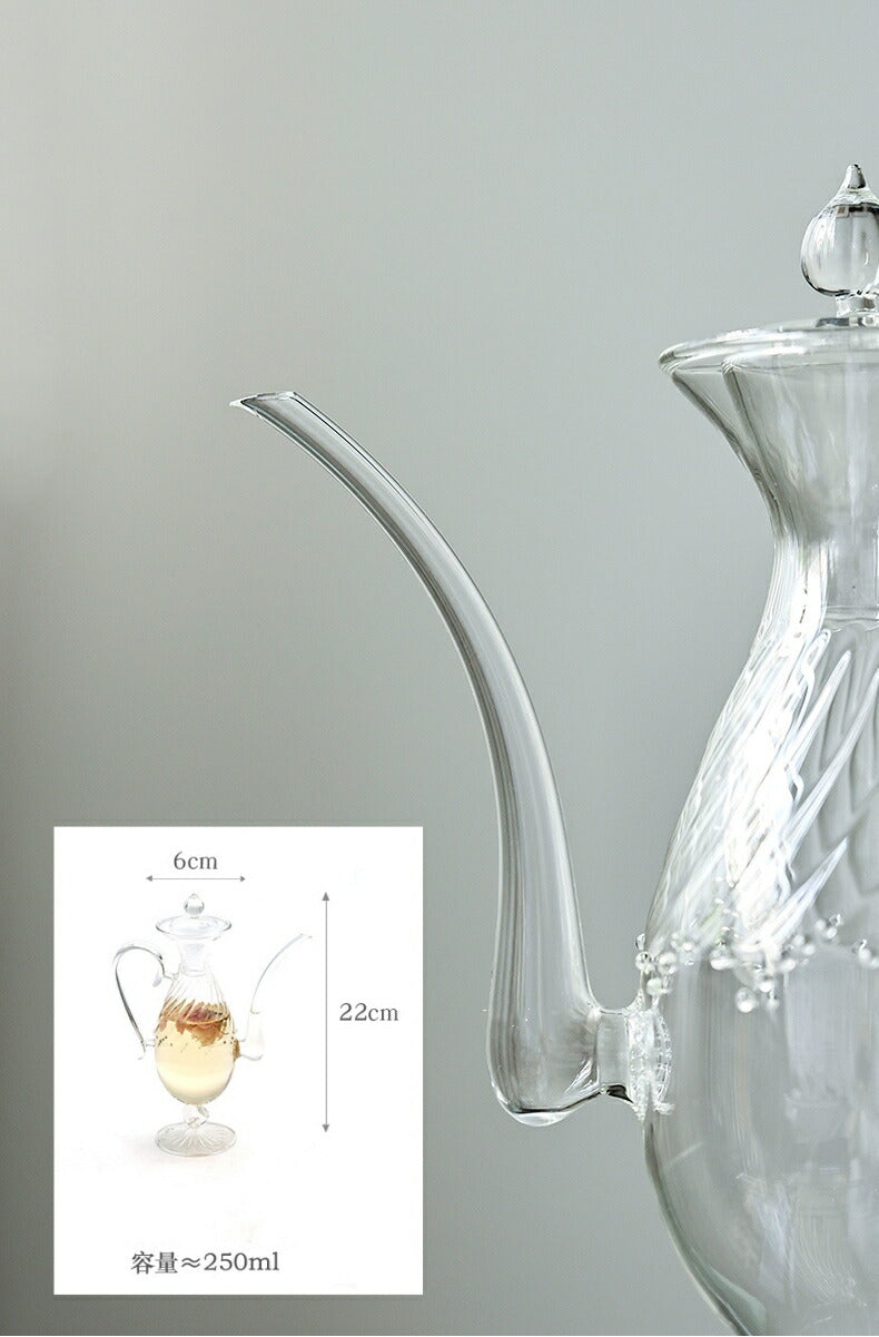 Glass Art 鈴? 耐熱ガラス ティーポット ガラス 急須 ガラスティーポット 250ml 筋紋 筋入 地炉利 ちろり ガラス製ポット 紅茶ポット お茶ポット ガラスポット 冷酒器 冷酒カラフェ アフターティー お家ティータイム IwaiLoft 母の日 プレゼント