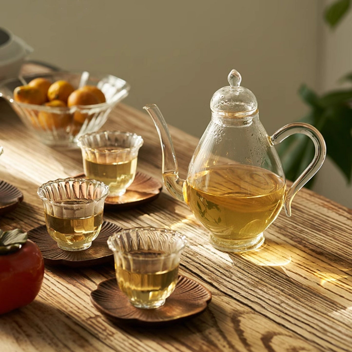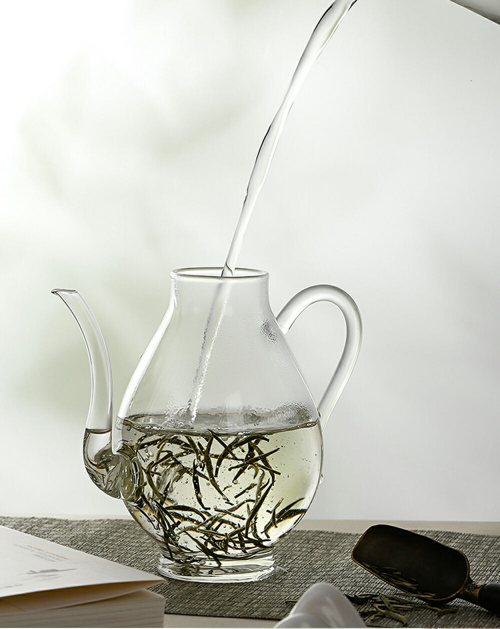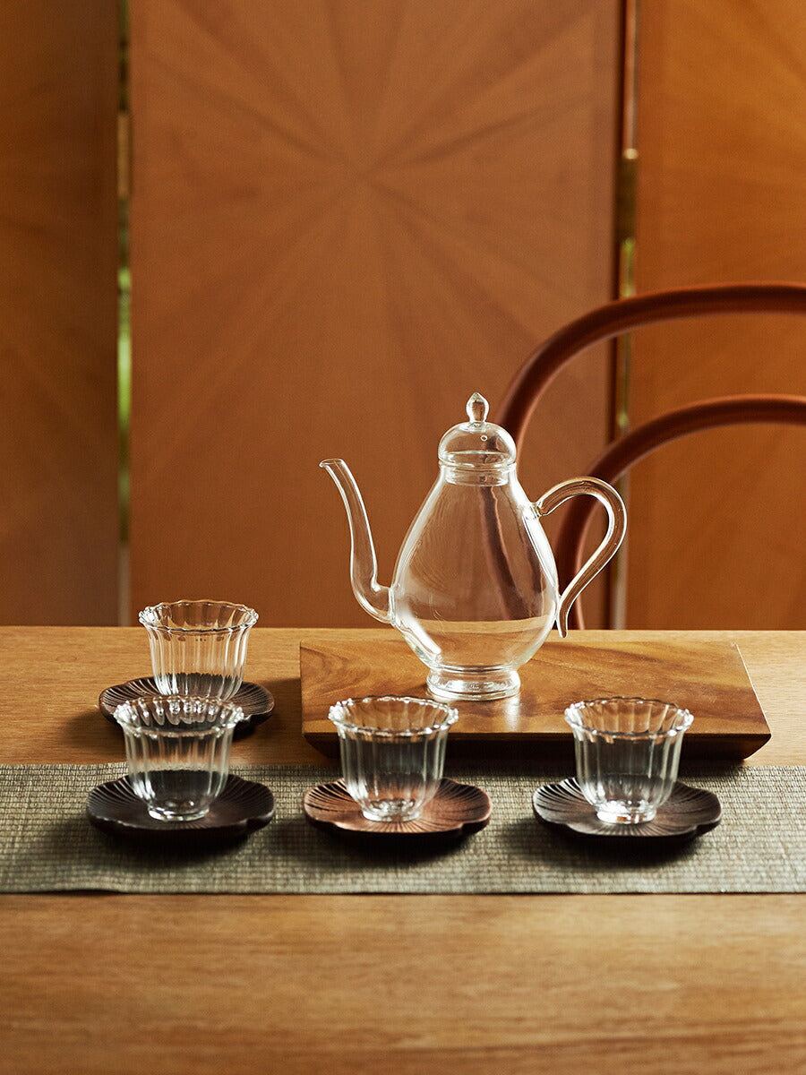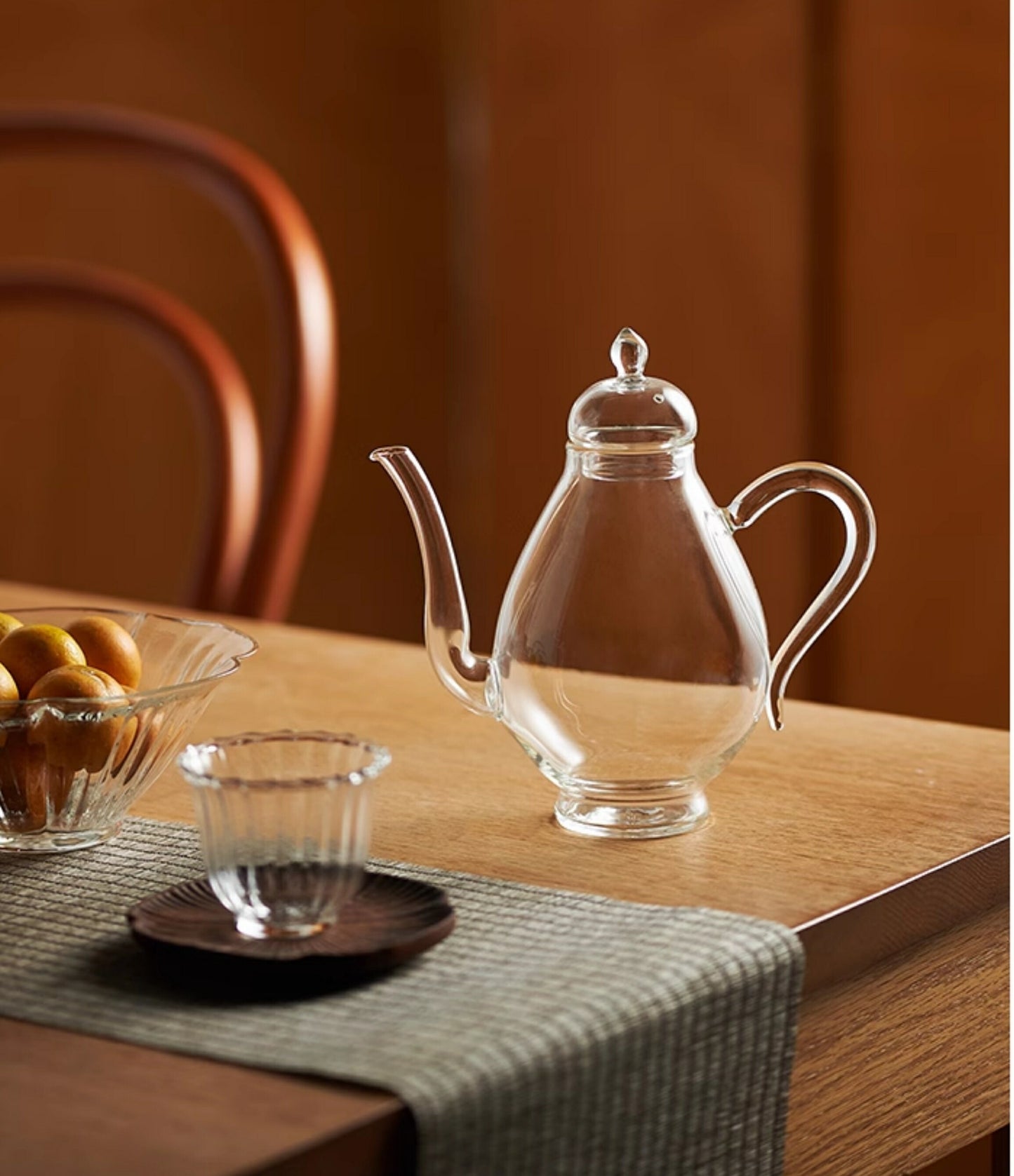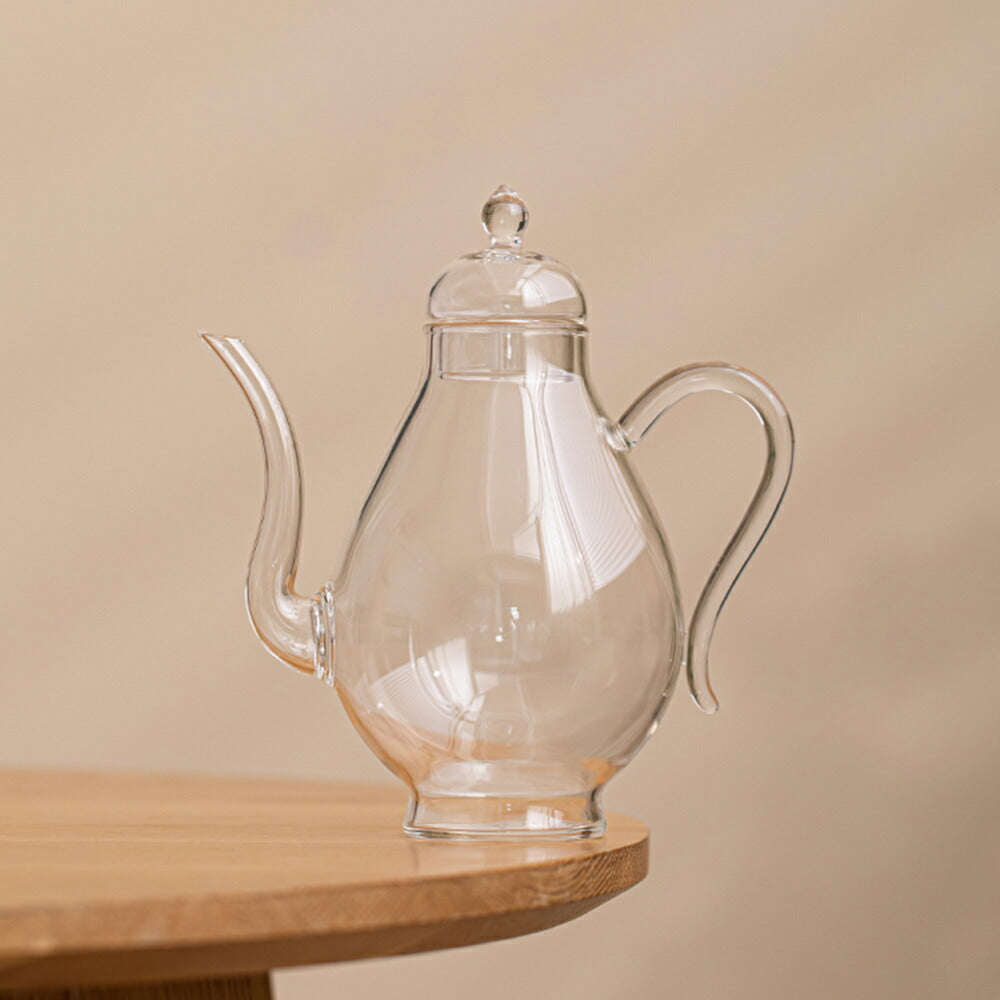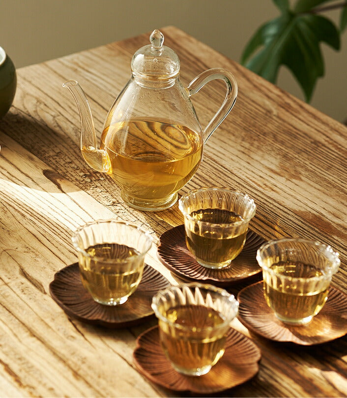 450ml 。和のテーブルセッティングで大活躍する、ガラスの「ちろり」です。 お酒だけでなくお茶にもおすすめです。工芸茶や花茶、ハーブティーは目にも美しいいっぱいになるはず。