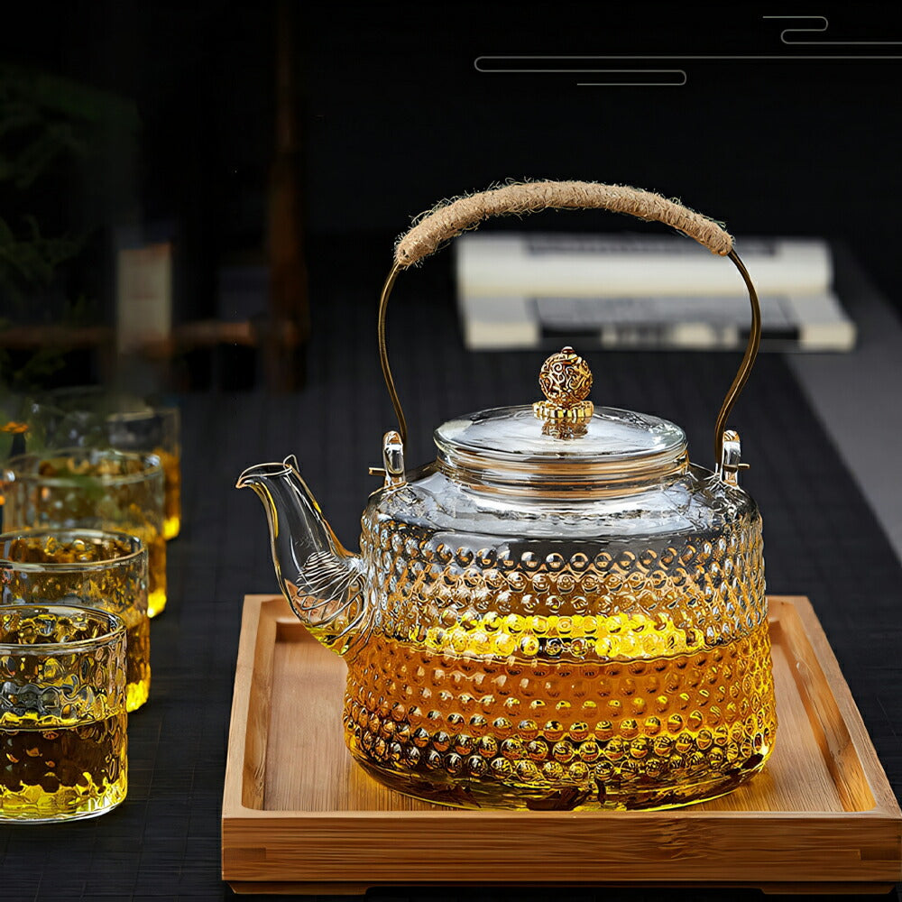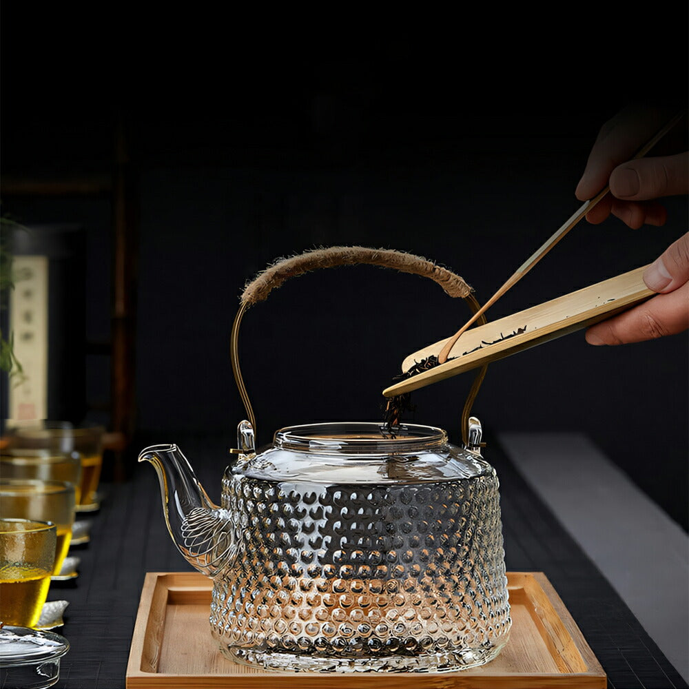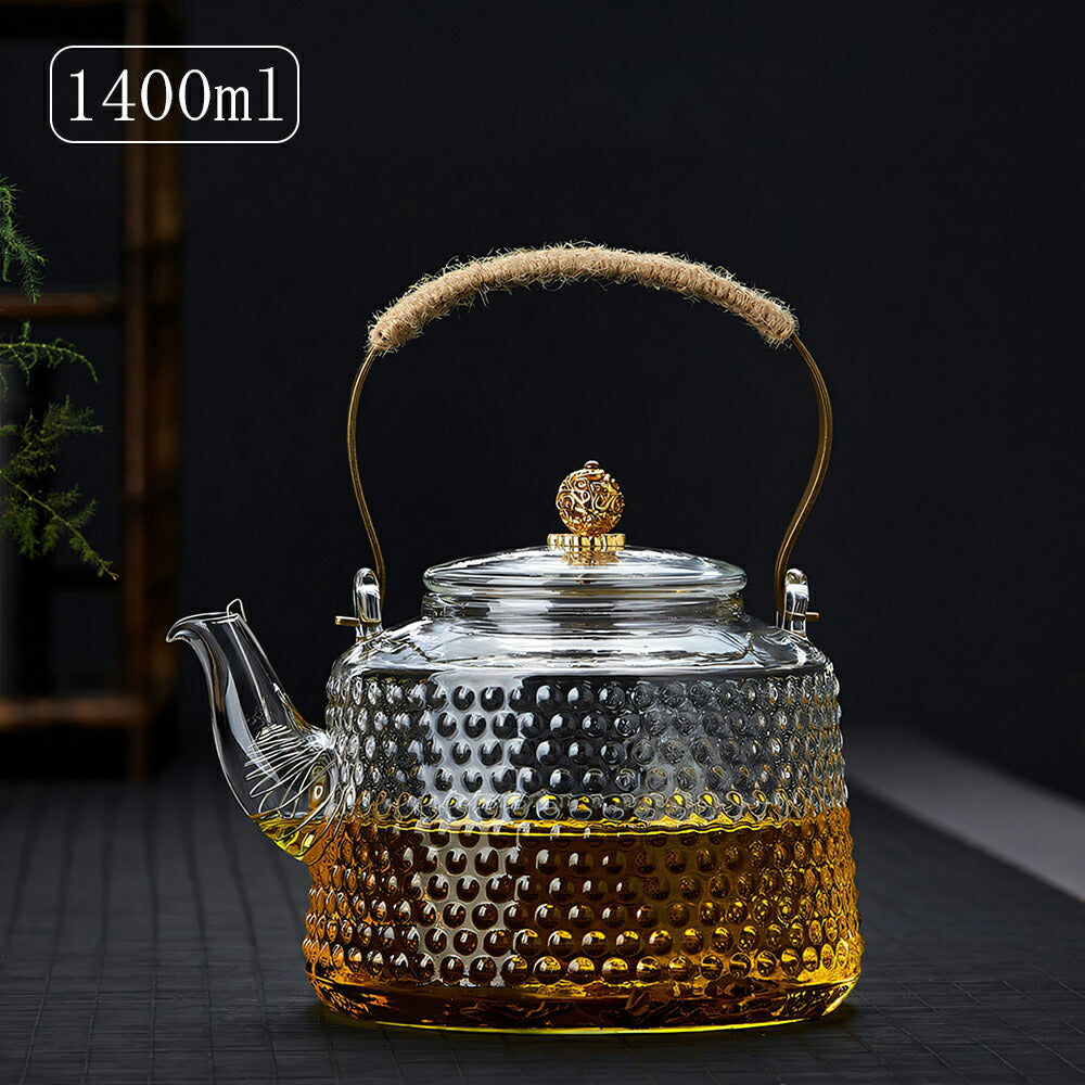 IwaiLoft ドット柄 耐熱ガラス ティーポット 茶こし付き ガラス製ポット 手作り ジャンピング 紅茶ポット フルーツティー 花茶 工芸茶 ハーフティー に ガラス急須 健康茶器【直火可】【送料無料】