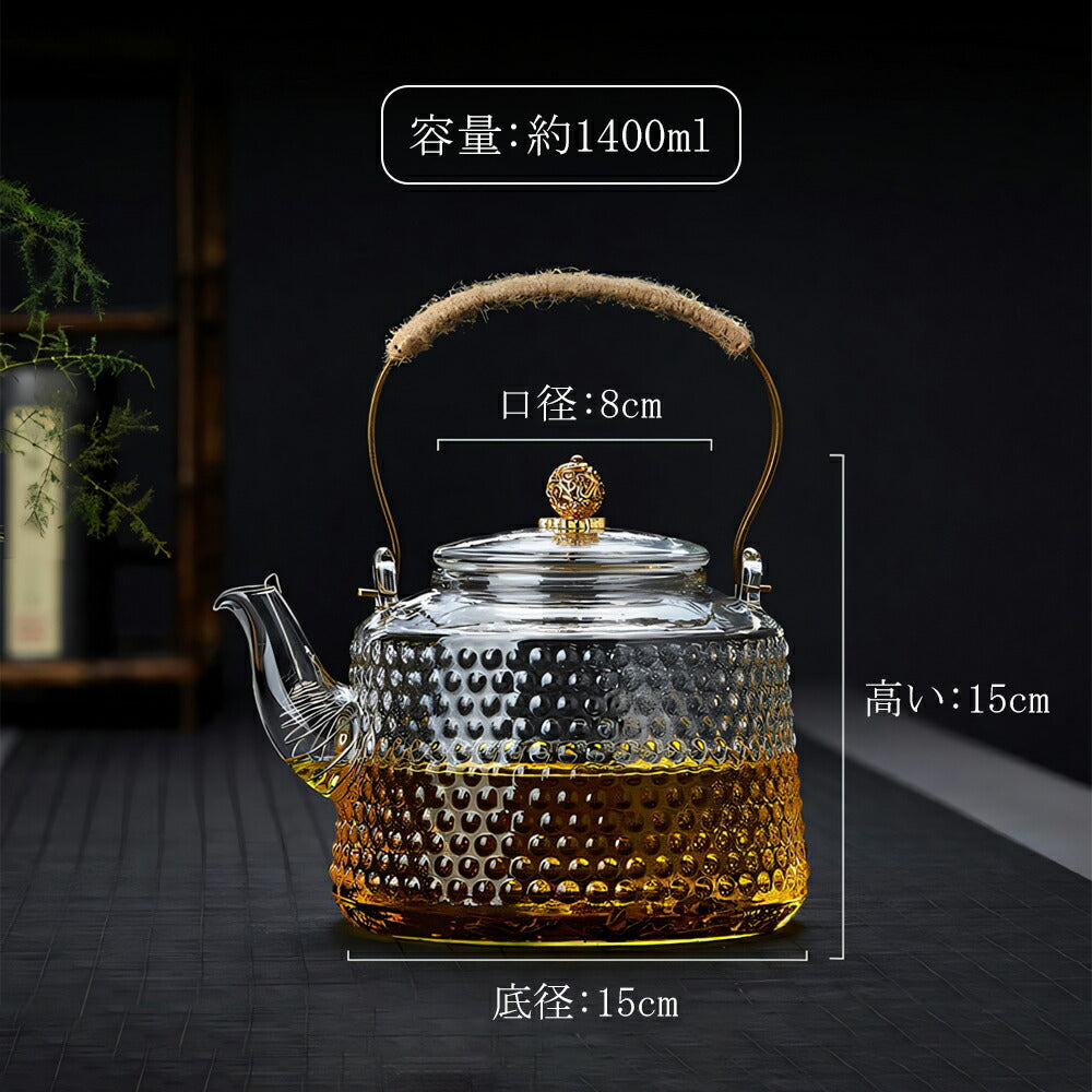 | 品質表示 | 材質:耐熱ガラス(耐熱温度差120℃) 容量:1400ml 適量130ml 重量(個箱含む) 500g サイズ:口径80mm*底径150mm*全体高さ150mm 着脱が簡単なステンレス製金針式茶漉し |