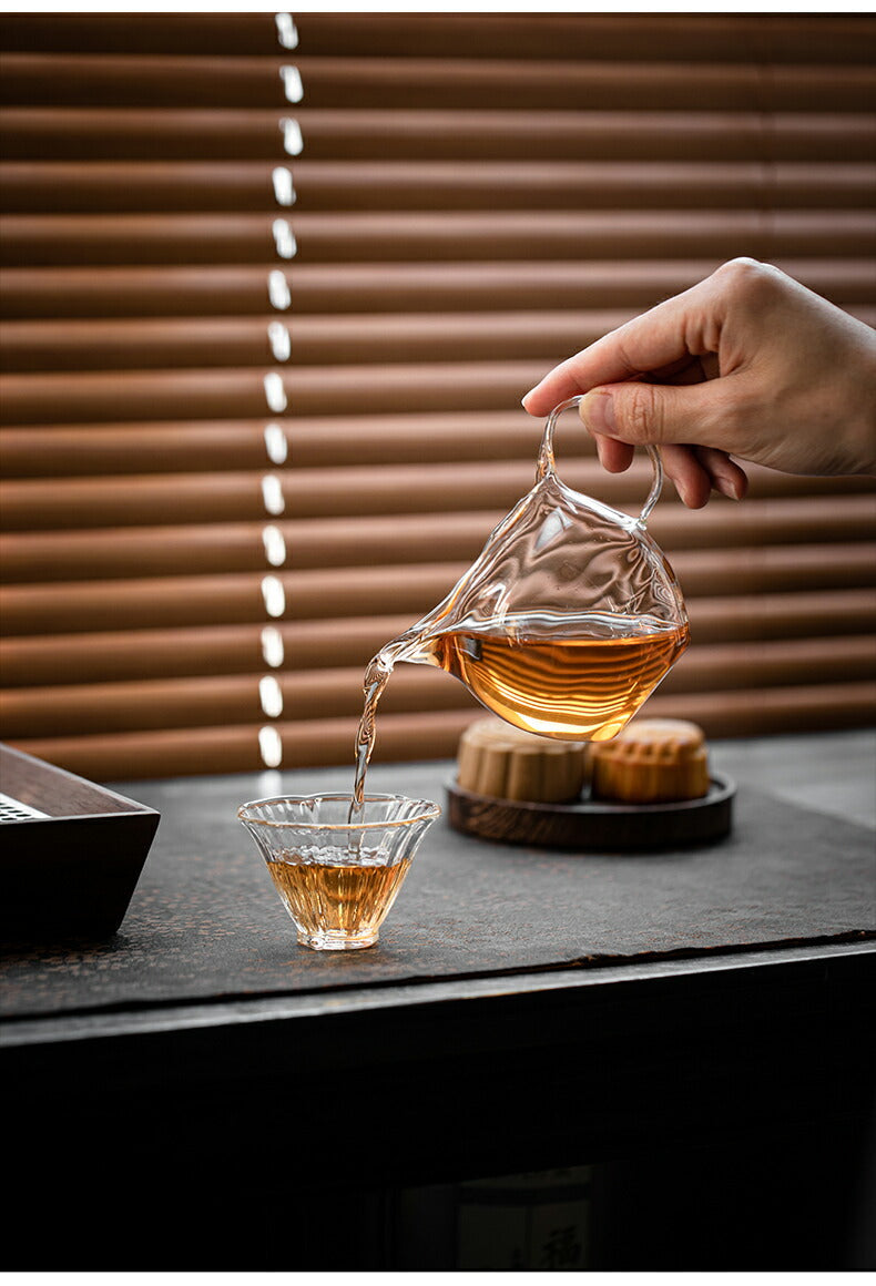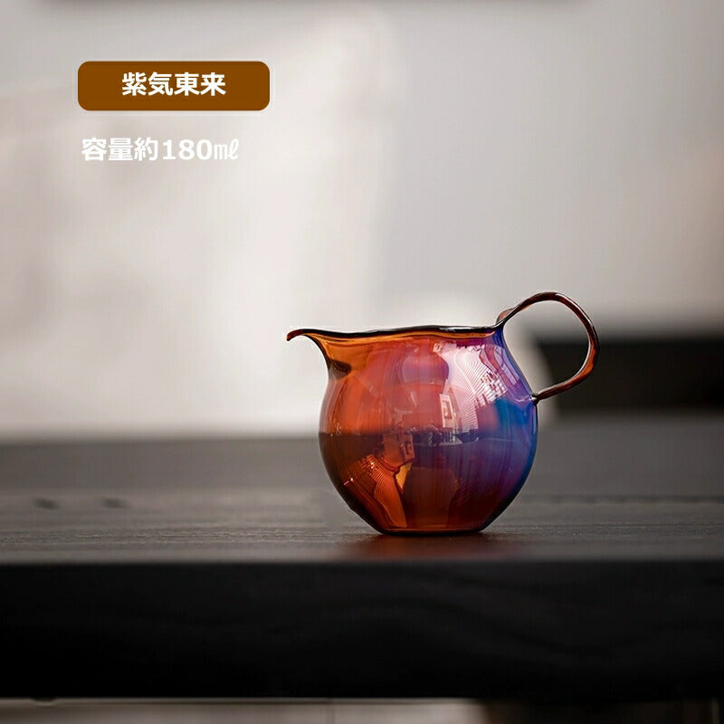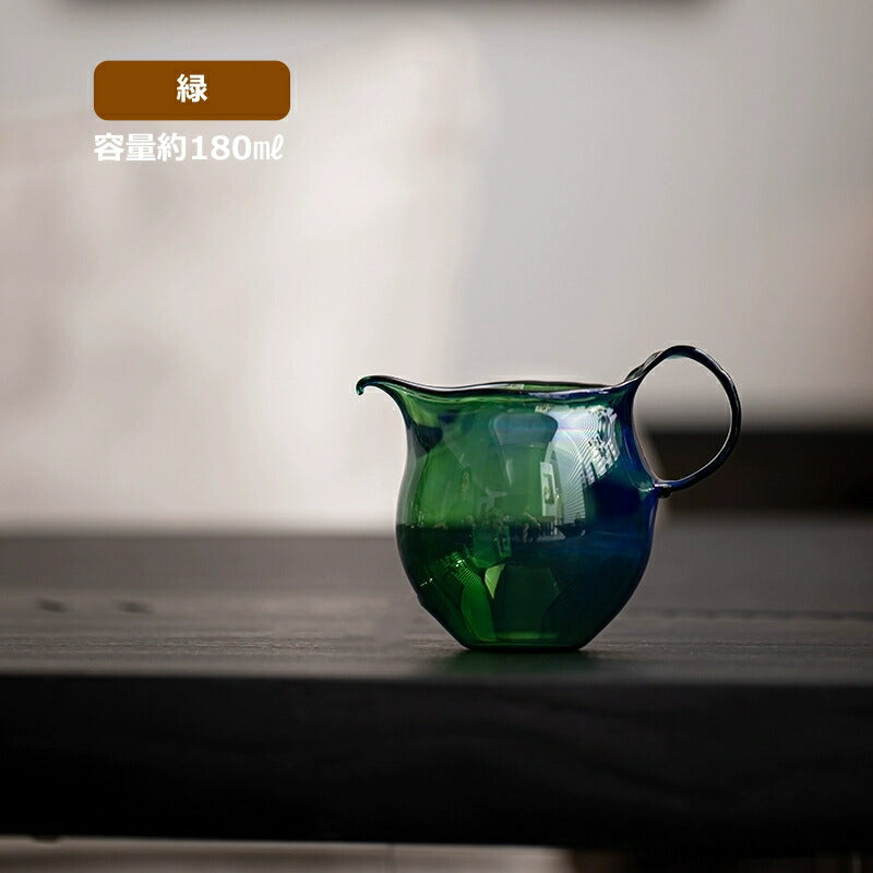 玄・多彩 ガラスピッチャー 180ml 耐熱ガラス コーヒーサーバー 手作り 片口 徳利 酒器 日本酒 片口注器 ミルクピッチャー 小鉢 取り鉢 片口鉢 手作り 和食器 シンプル 中国茶器 公道杯 ティーサーバー 茶海 分茶器 IwaiLoft