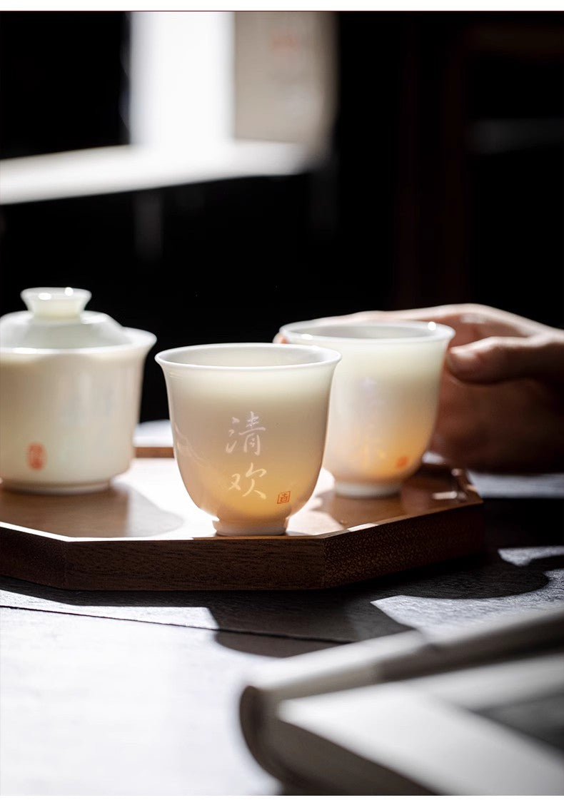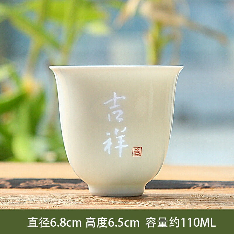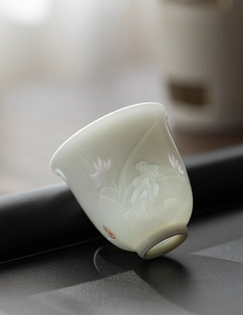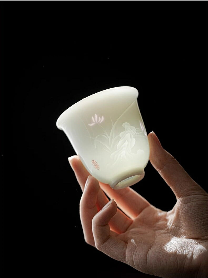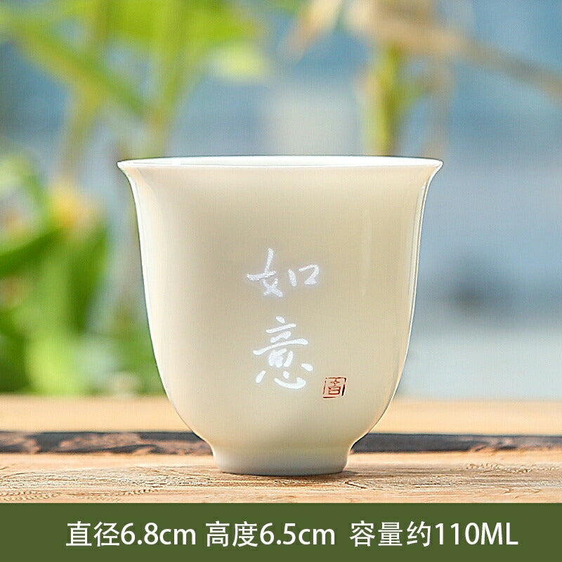 愛着を感じる太陽の花蛍手盃湯飲みティーコップティーグラス猪口フリーカップ110ml玲瓏磁器白磁透彫磁器茶器茶杯中国青花瓷景徳鎮磁器茶芸IwaiLoft