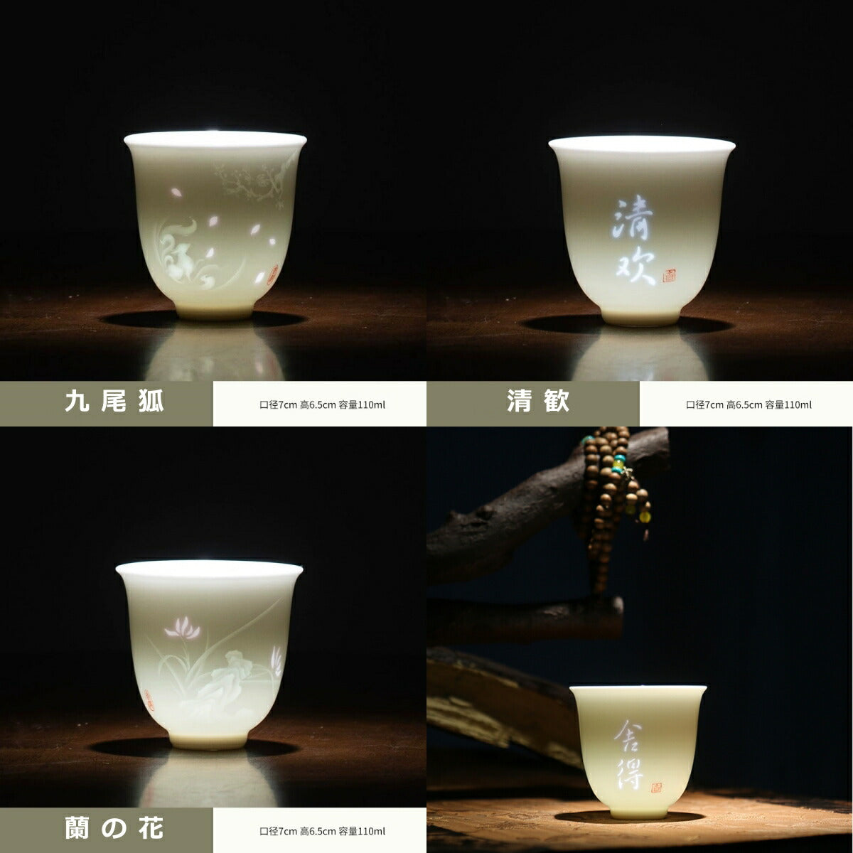 【愛着を感じる・蘭の花】透かし彫り蛍手 盃 湯飲み 漢字 ティーコップ ティーグラス 猪口 フリーカップ 青花磁 青花瓷 鈴瓏 110ml 玲瓏磁器 玲瓏磁 手作り 白磁 玲瓏 ほたるで 透彫 食器 磁器 ほたる 茶器 茶杯 中国 青花瓷 景徳鎮 磁器 茶芸 IwaiLoft