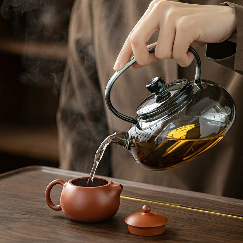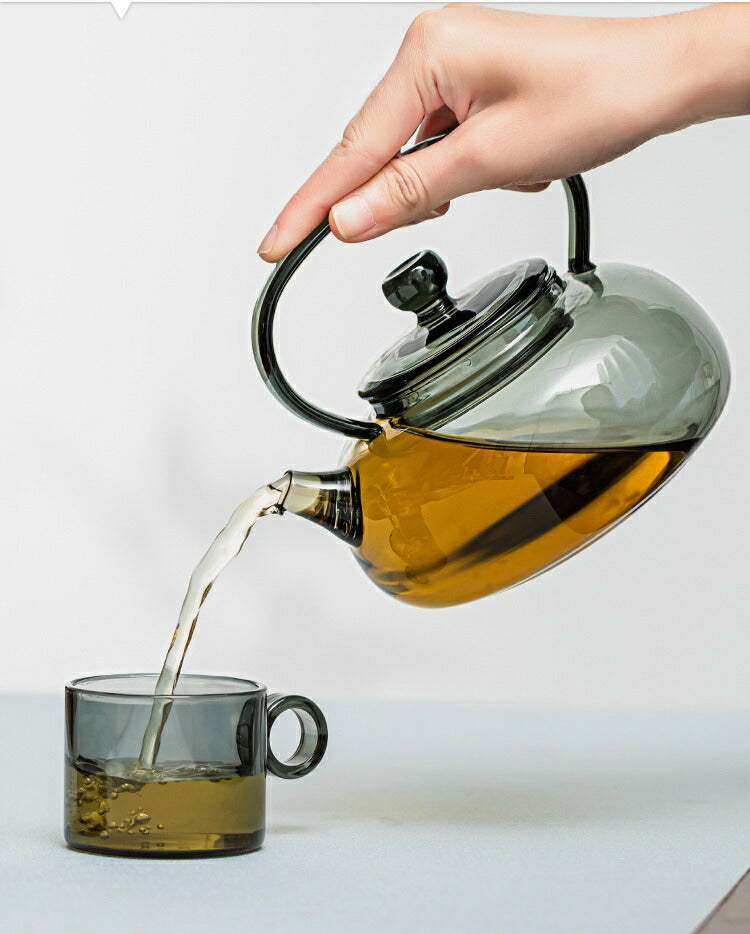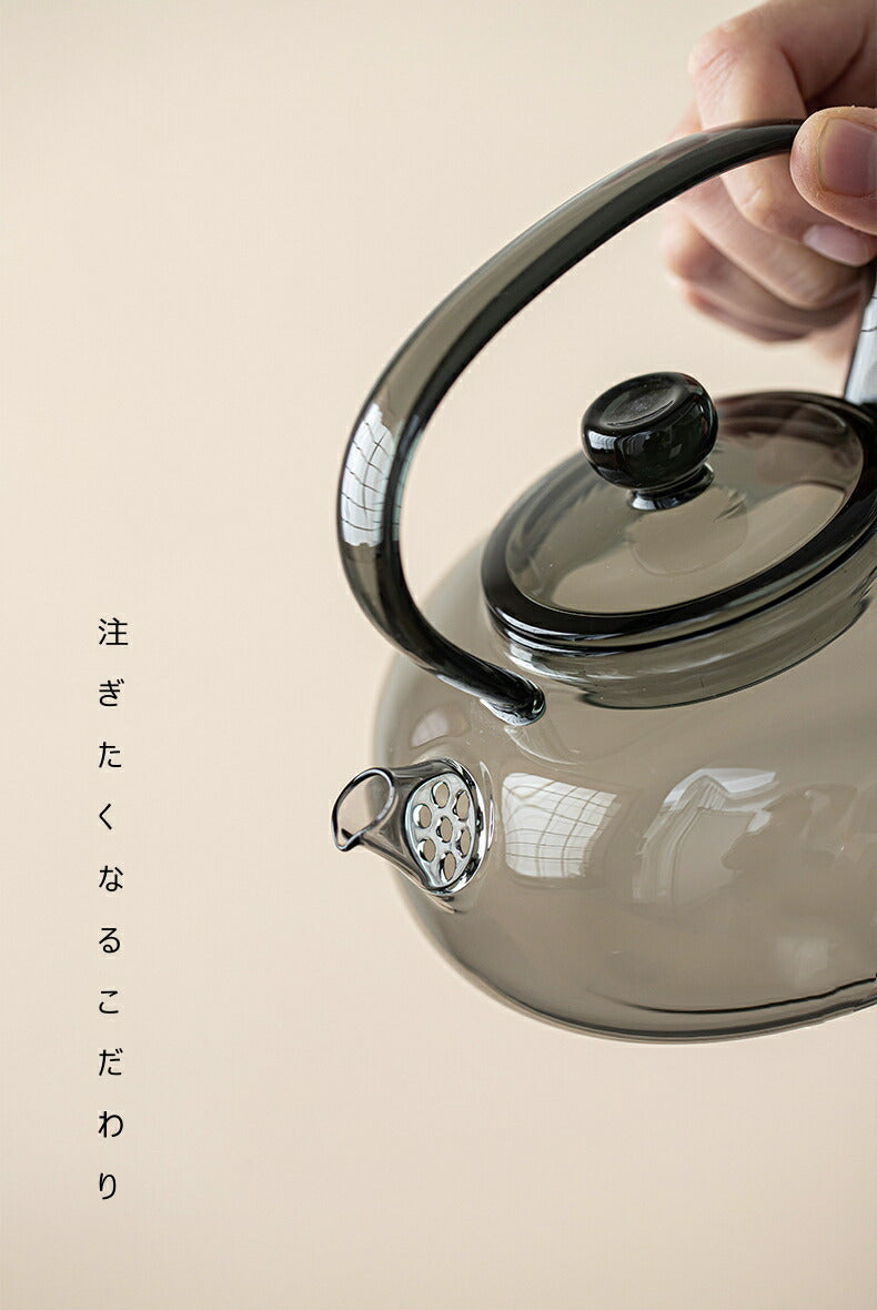 雅蘭・煙 耐熱ガラス ティーポット ガラス急須 ガラスティーポット 小 グレー 平型 500ml 耐熱ティーポット ガラスポット 紅茶ポット ガラスちろり だし汁ポット だし茶漬け お酒 湯煎ジャグ 小 水差し ポット お茶ポット 茶器 ガラス 直火 母の日 プレゼント IwaiLoft