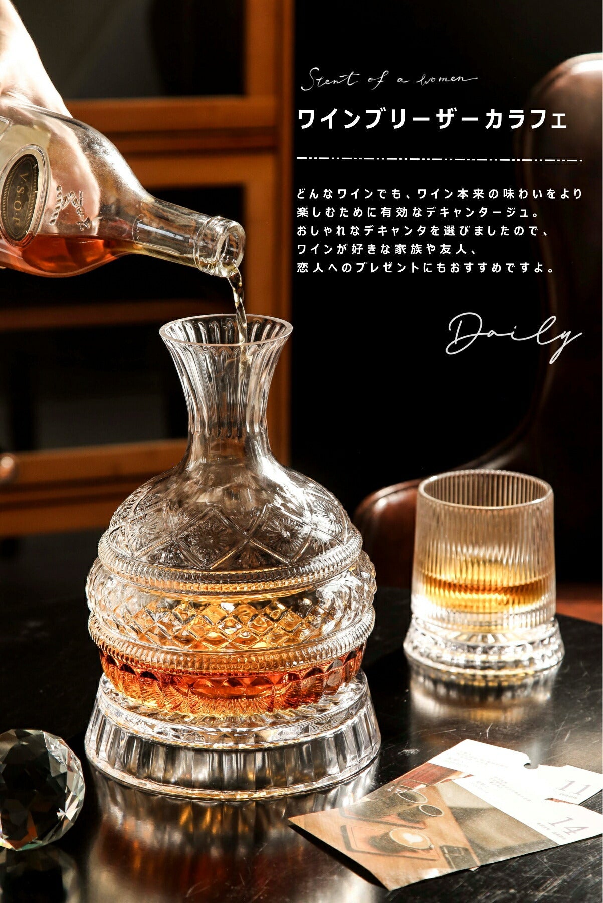 回転する 星 ワインデキャンタ ワインデカンタ ワインボトル ワインブリーザー カラフェ デキャンタージュ デキャンタ 細口 縦型 蓋付き カラフェ スピングラス ロックグラス タンブラーグラス 回転グラス 焼酎グラス 水出しポット 冷茶ポット 冷茶ボトル 酒瓶 IwaiLoft