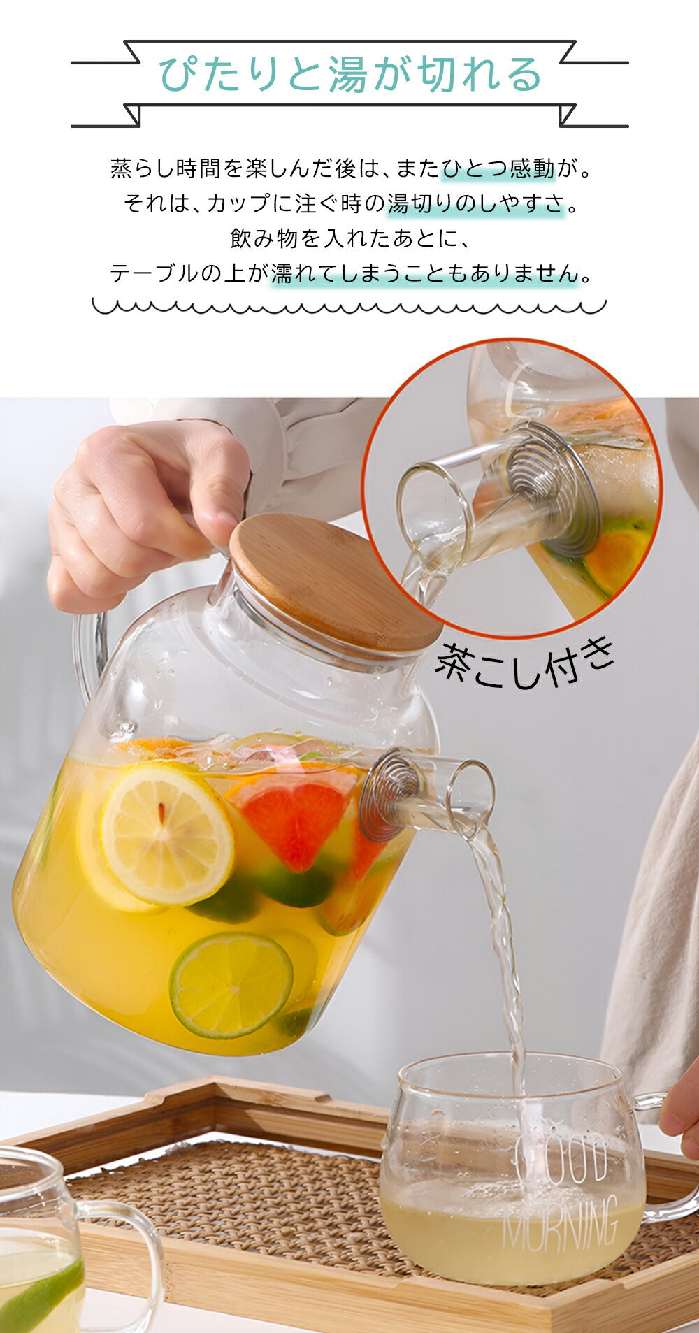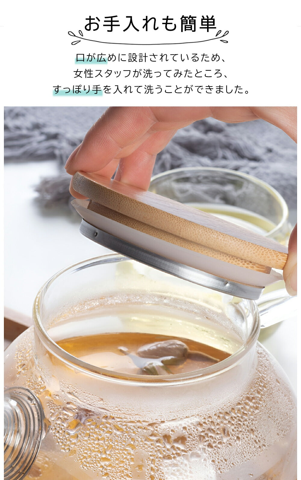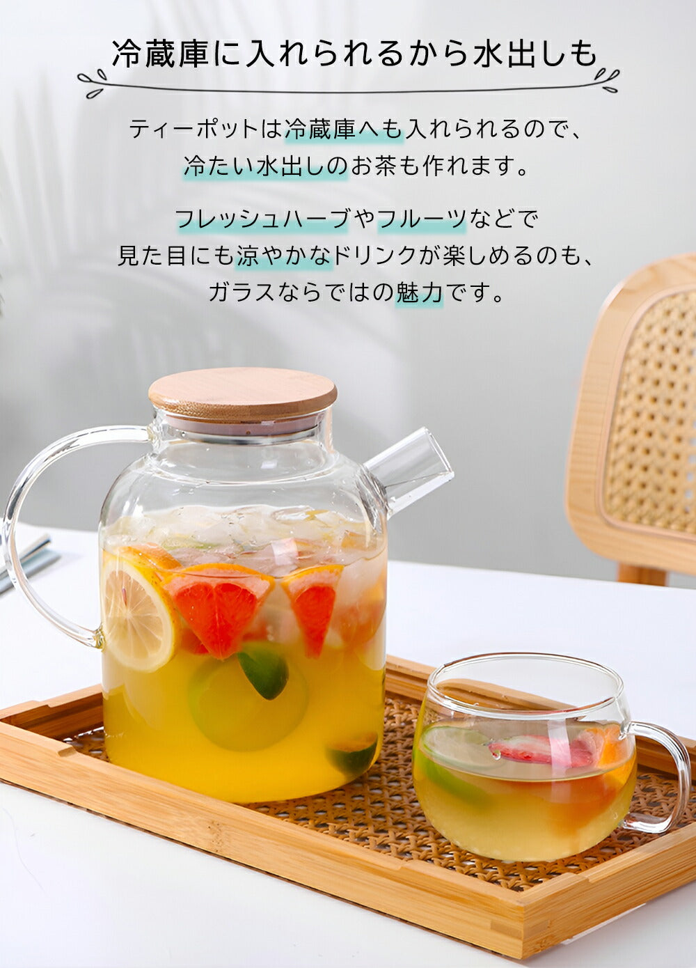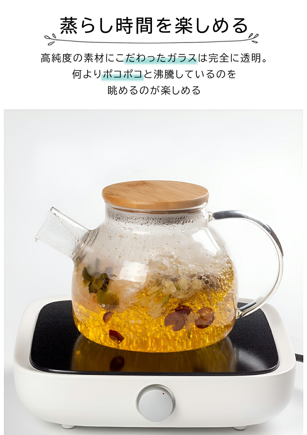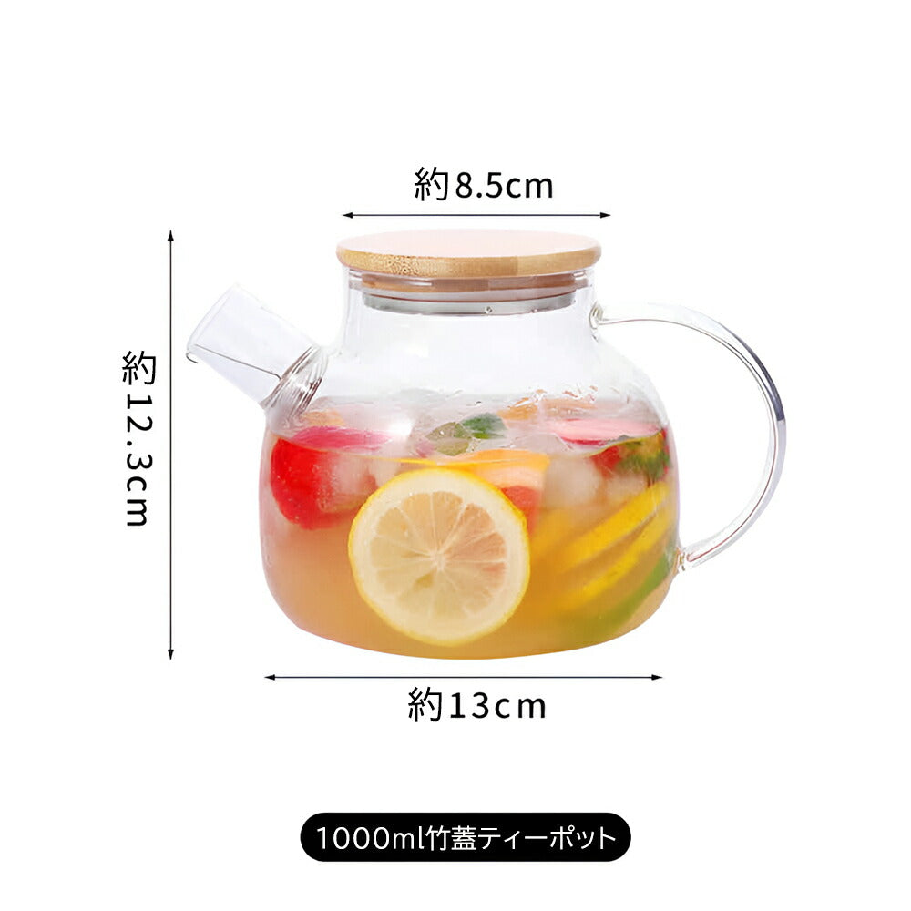 IwaiLoft 北欧 耐熱ガラス ティーポット ガラス急須 金針茶こし付き ガラスやかん ジュース ドリンクポット 竹・ステンレス蓋 ガラスポット 冷蔵庫入れる 麦茶ポット おしゃれ 紅茶ポット 冷茶 フルーツティー 花茶 工芸茶 にオススメ 洗いやすい ピッチャー 直火可